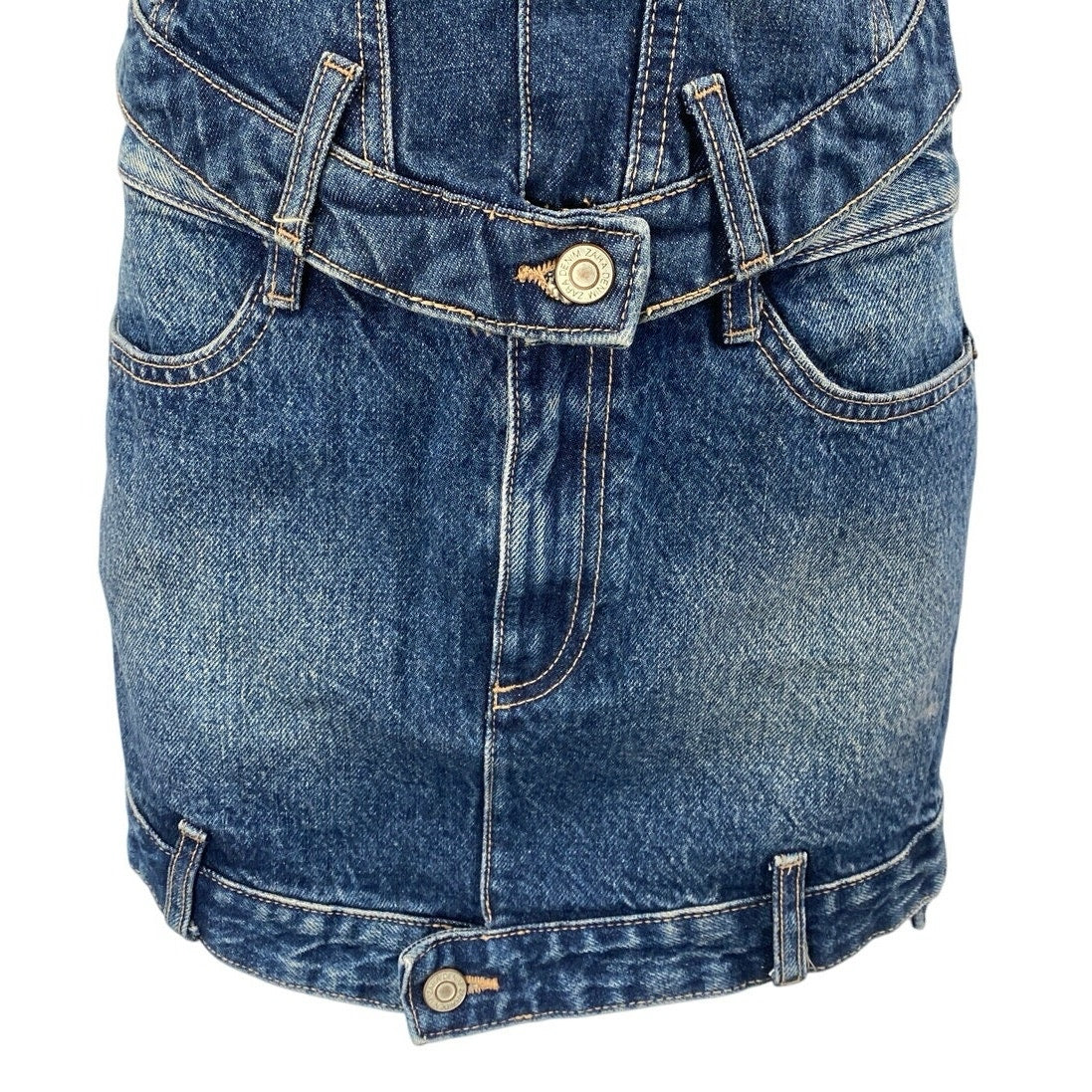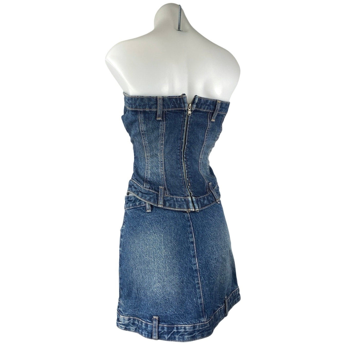 Zara Blue Strapless Tube Bandeau Denim Jeans Crop Top Mini Skirt 2 Pc Set Size S