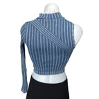 Zara Blue Striped One Shoulder Long Sleeve Mock Neck Crop Sweater Top Size M/L