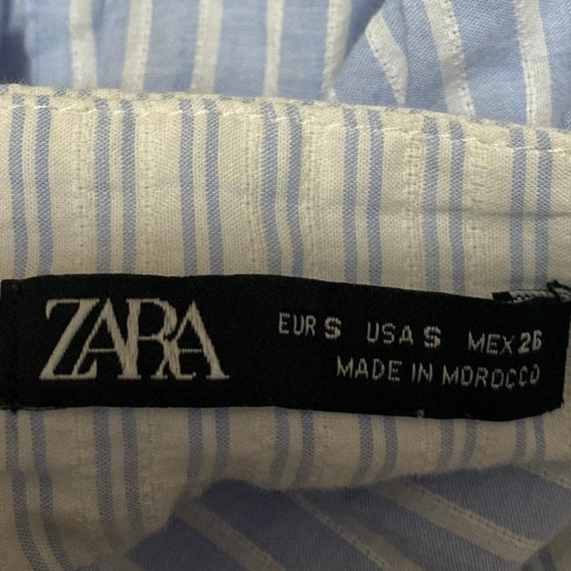 Zara Blue White Sleeveless Striped Cami Camisole Tank Peplum Crop Top Size S