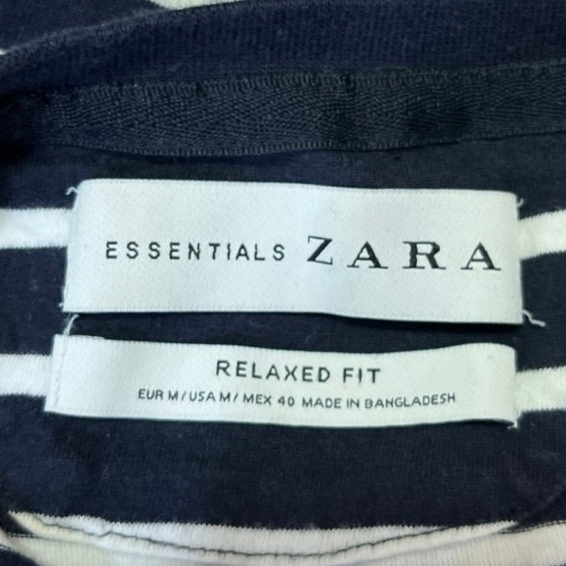 Zara Men's Blue White Striped Short Sleeve Crew Neck Relaxed Fit Tee T-Shirt Top Size M