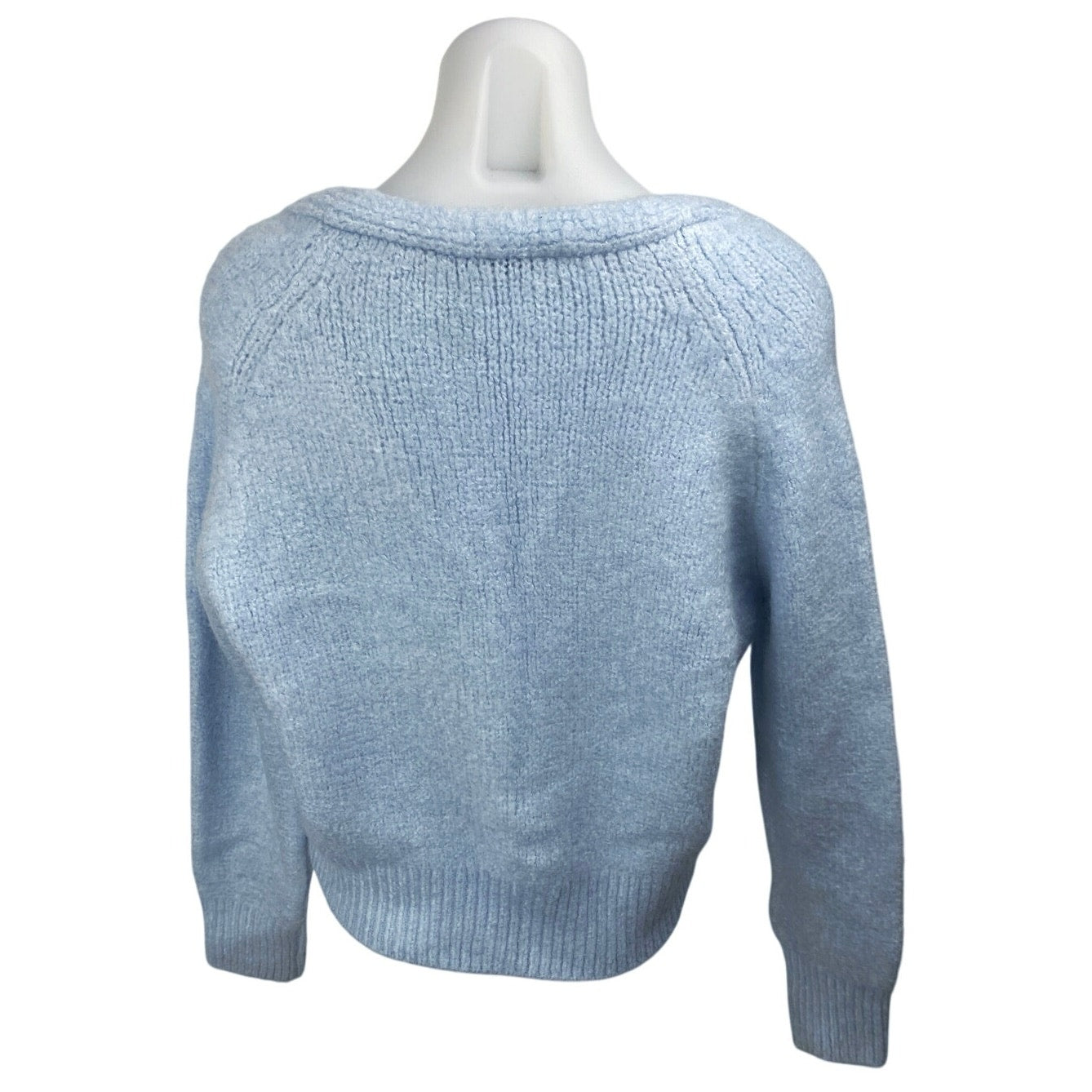 Zara Blue Yellow Embroidered Floral Long Sleeve Button Up Cardigan Sweater Top S