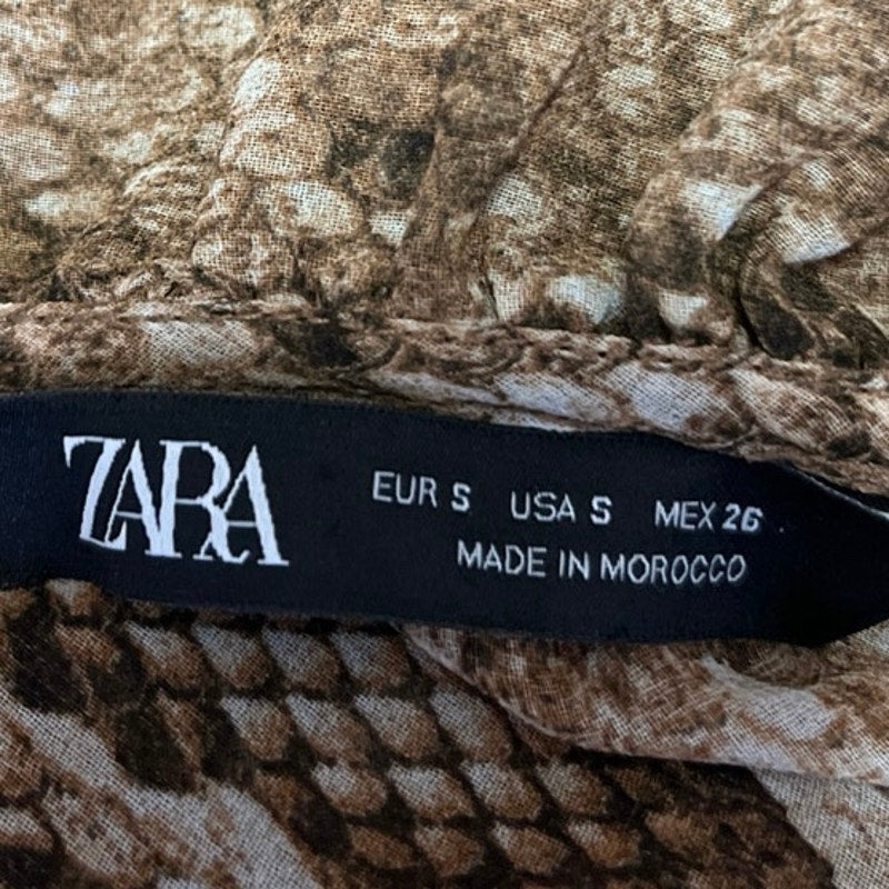 Zara Brown Animal Snake Print Long Sleeve Ruffle Crop Blouse Top Size S