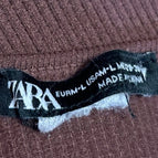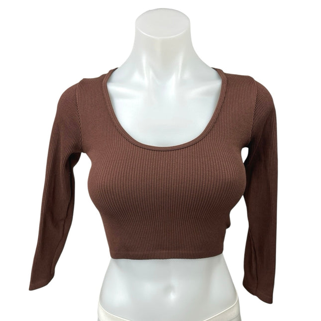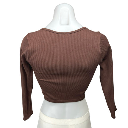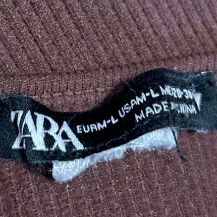 Zara Brown Ribbed Knit Scoop Neck 3/4 Sleeve Stretch Crop Sweater Top Size M-L
