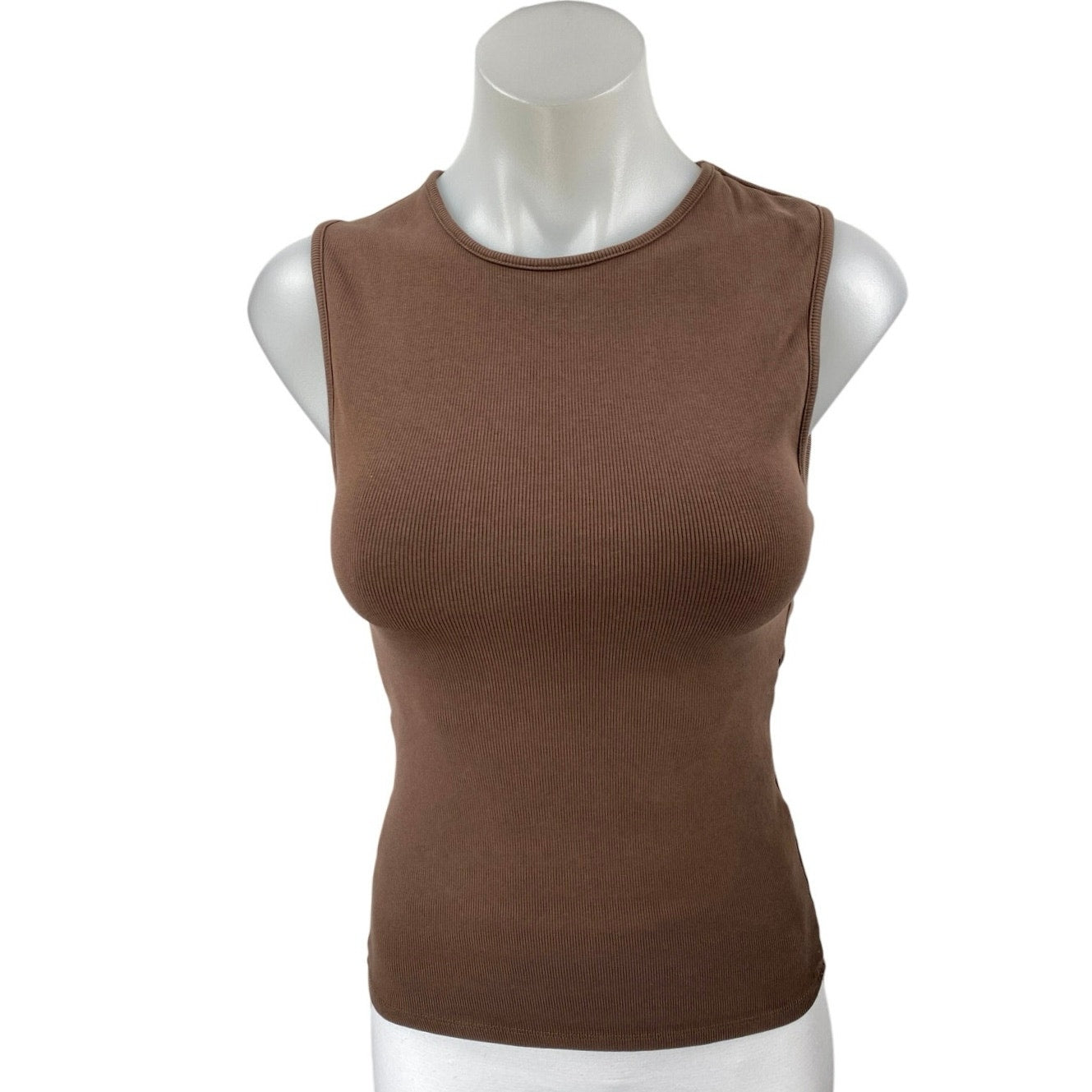 Zara Brown Sleeveless Ribbed Knit Cutout Back Cami Camisole Tank Top Size M