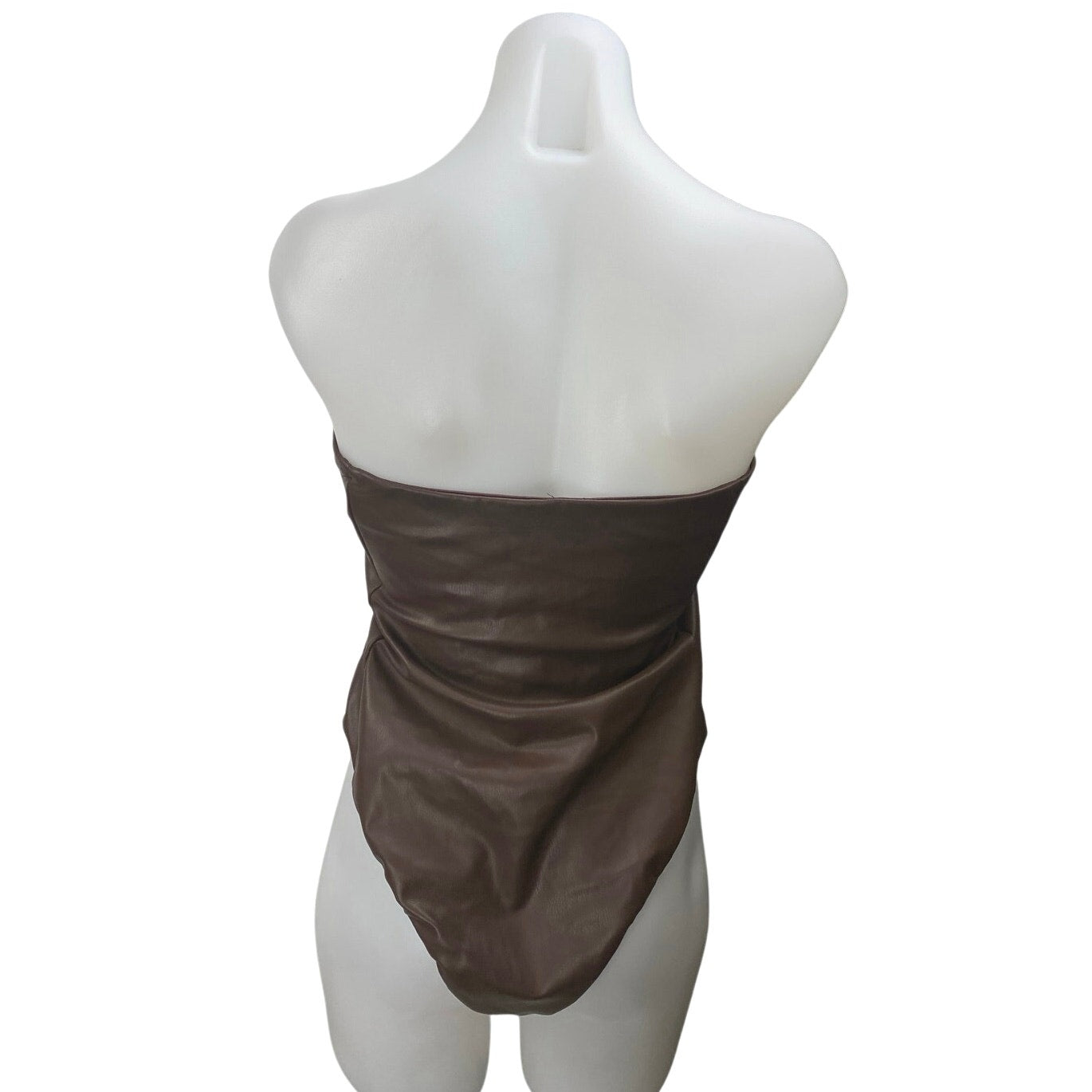 Zara Brown Strapless Faux Leather Vegan Sleeveless Tube Bandeau Bodysuit Top L