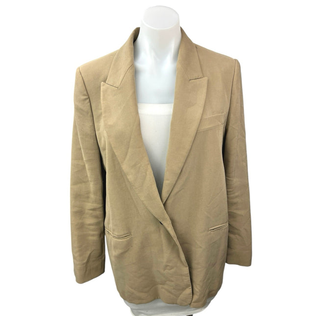 Zara Brown Tan One Button Notch Collar Long Sleeve Blazer Coat Jacket Size M
