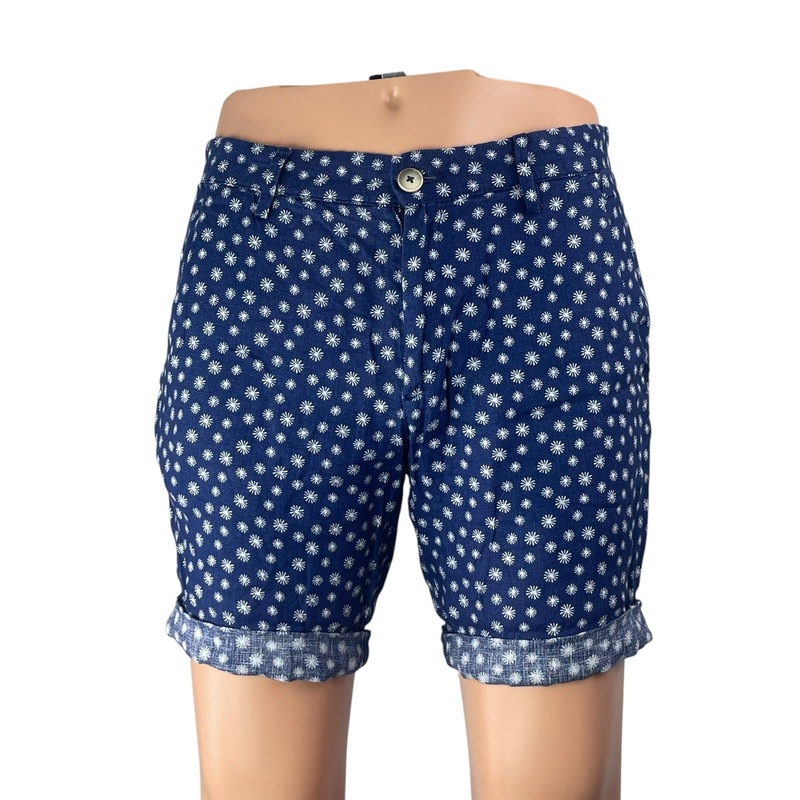 Zara Men's Blue Floral Mid Rise Slim Fit Straight Leg Bermuda Denim Shorts Sz SS