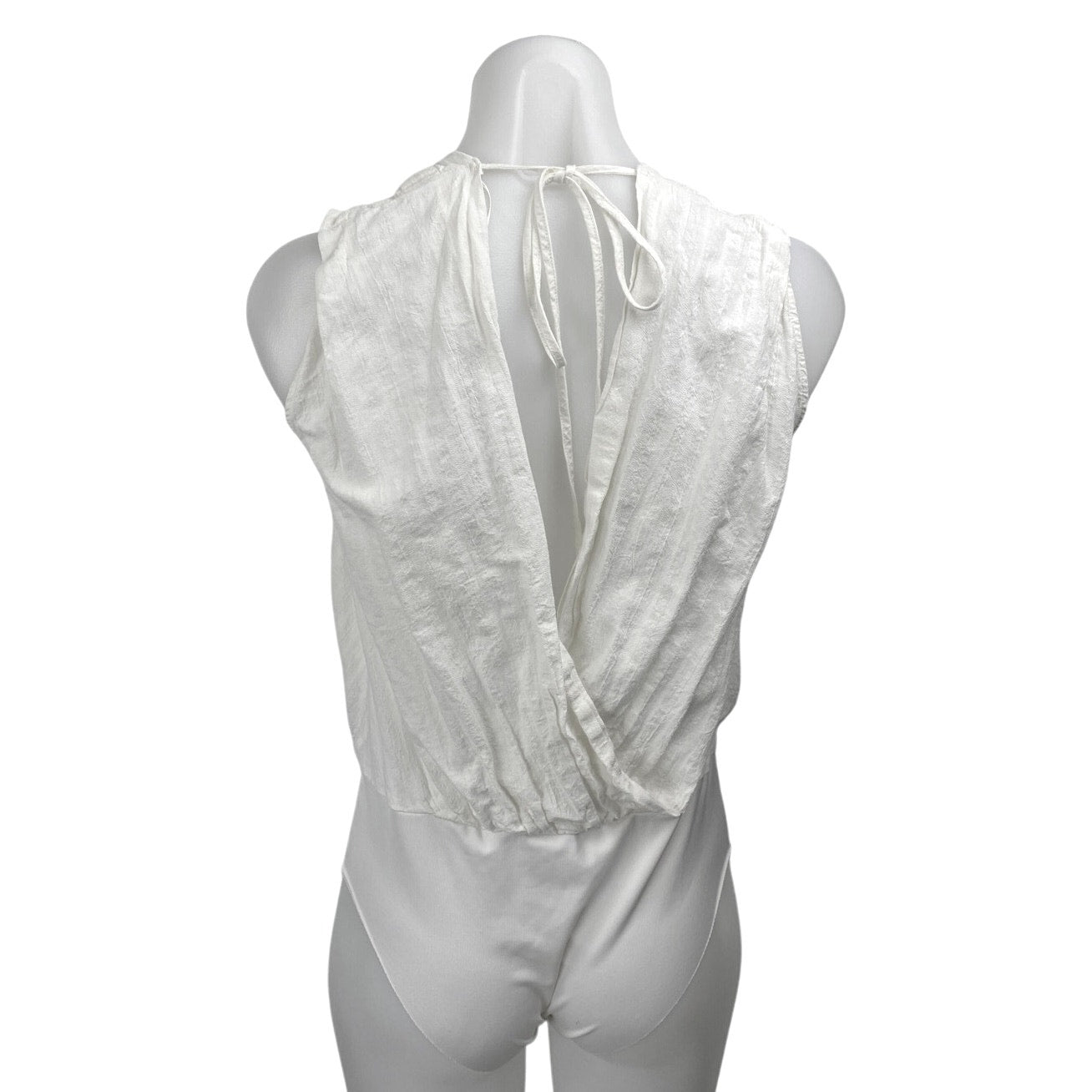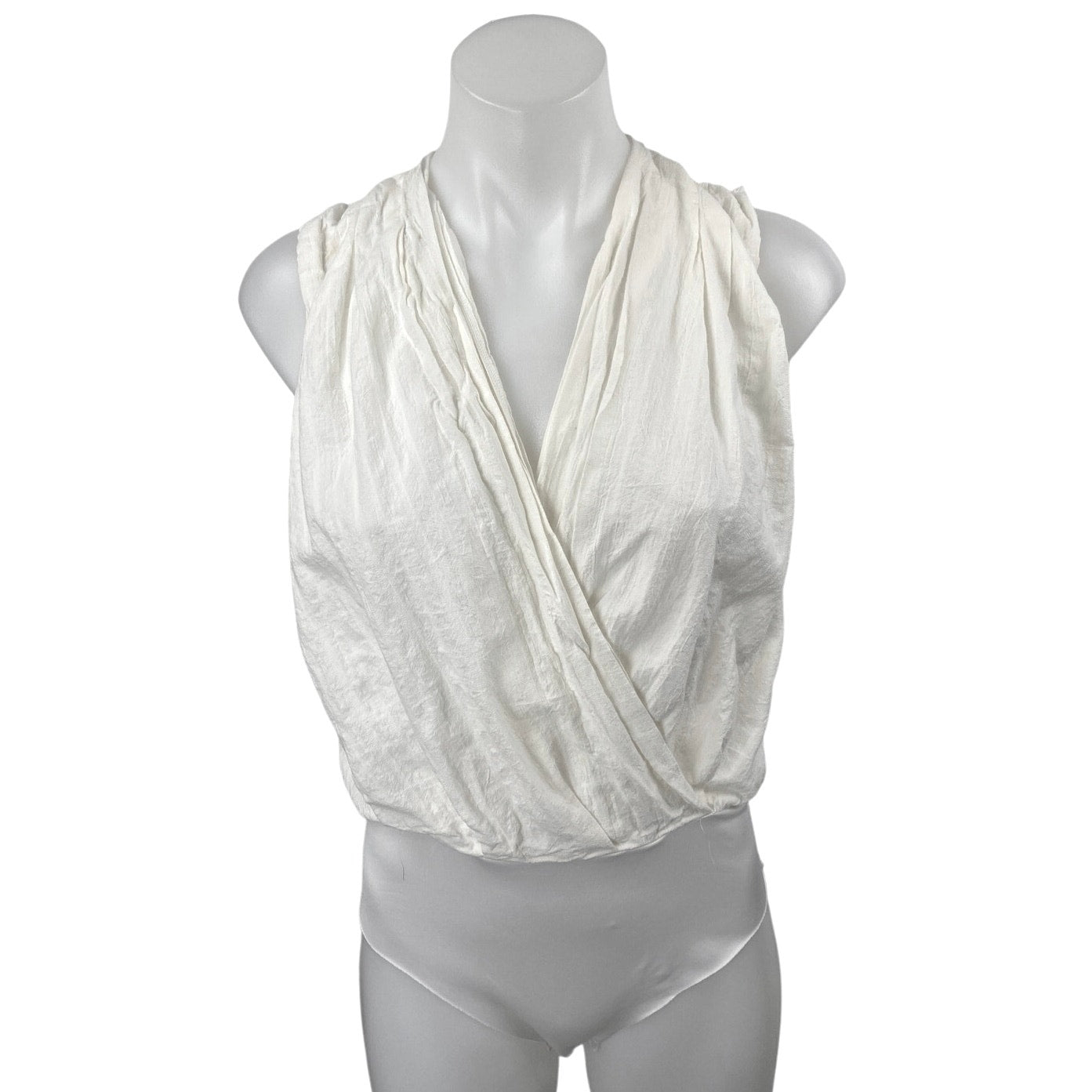 Zara White Sleeveless Faux Wrap Drapey Surplice Blouse Bodysuit Top Size S