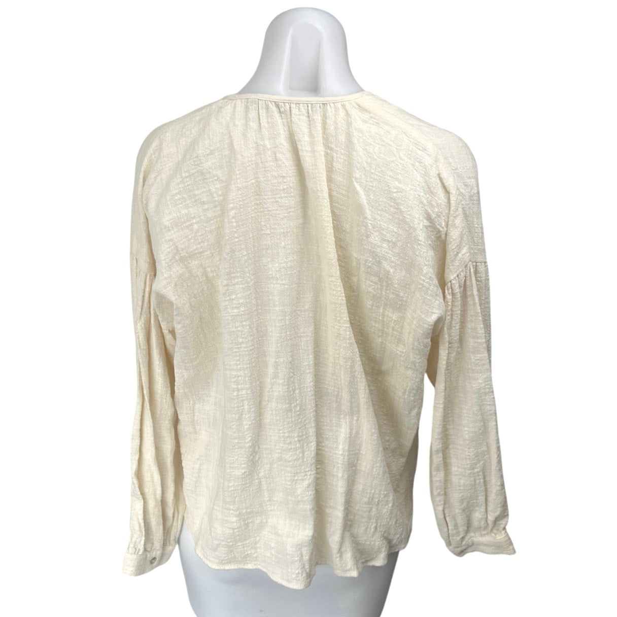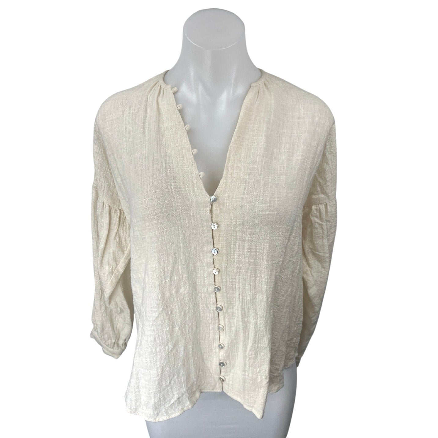 Zara Womens Beige Cotton Long Sleeve V-Neck Button Down Shirt Blouse Top Size XS