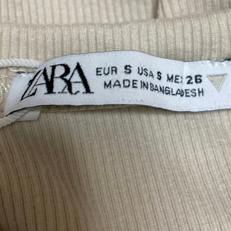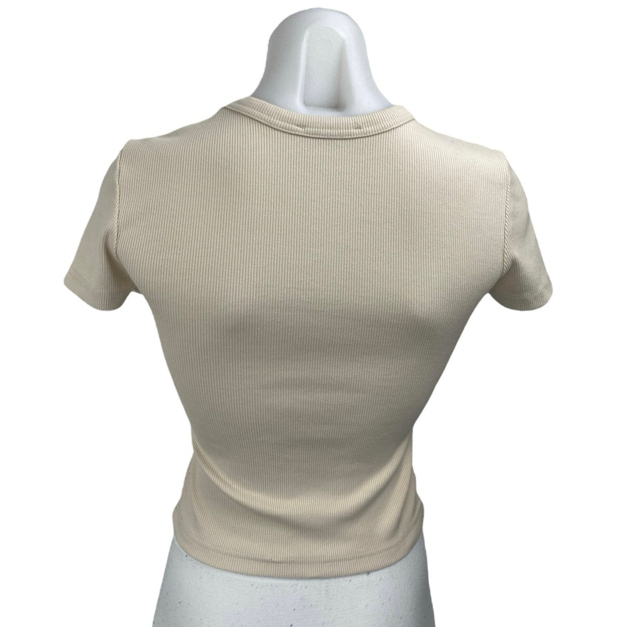 Zara Women's Beige Short Sleeve Ribbed Knit Crew Neck T Shirt Tee Top Size S