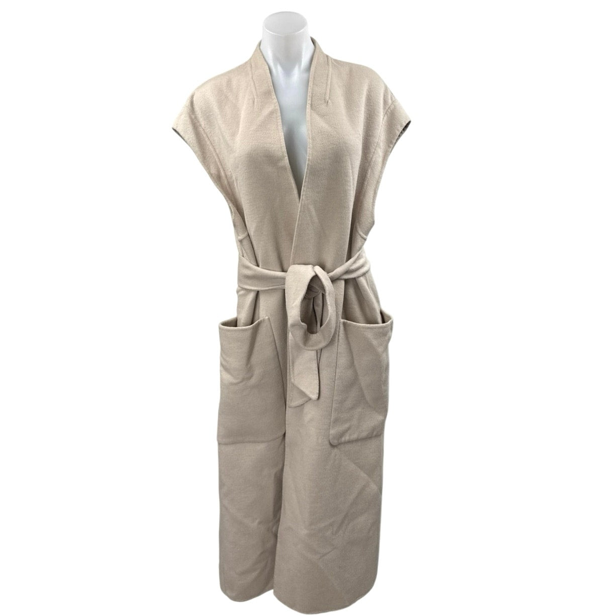 Zara Women's Beige Sleeveless Belted Pocket Long Trench Coat Jacket Size M/L