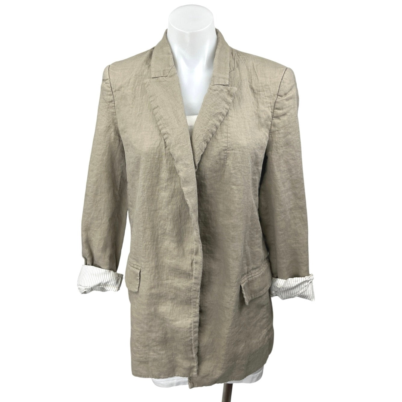 Zara Women's Beige Striped Long Sleeve Open Blazer Coat Suit Jacket Size M