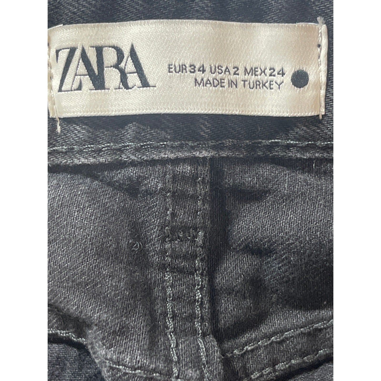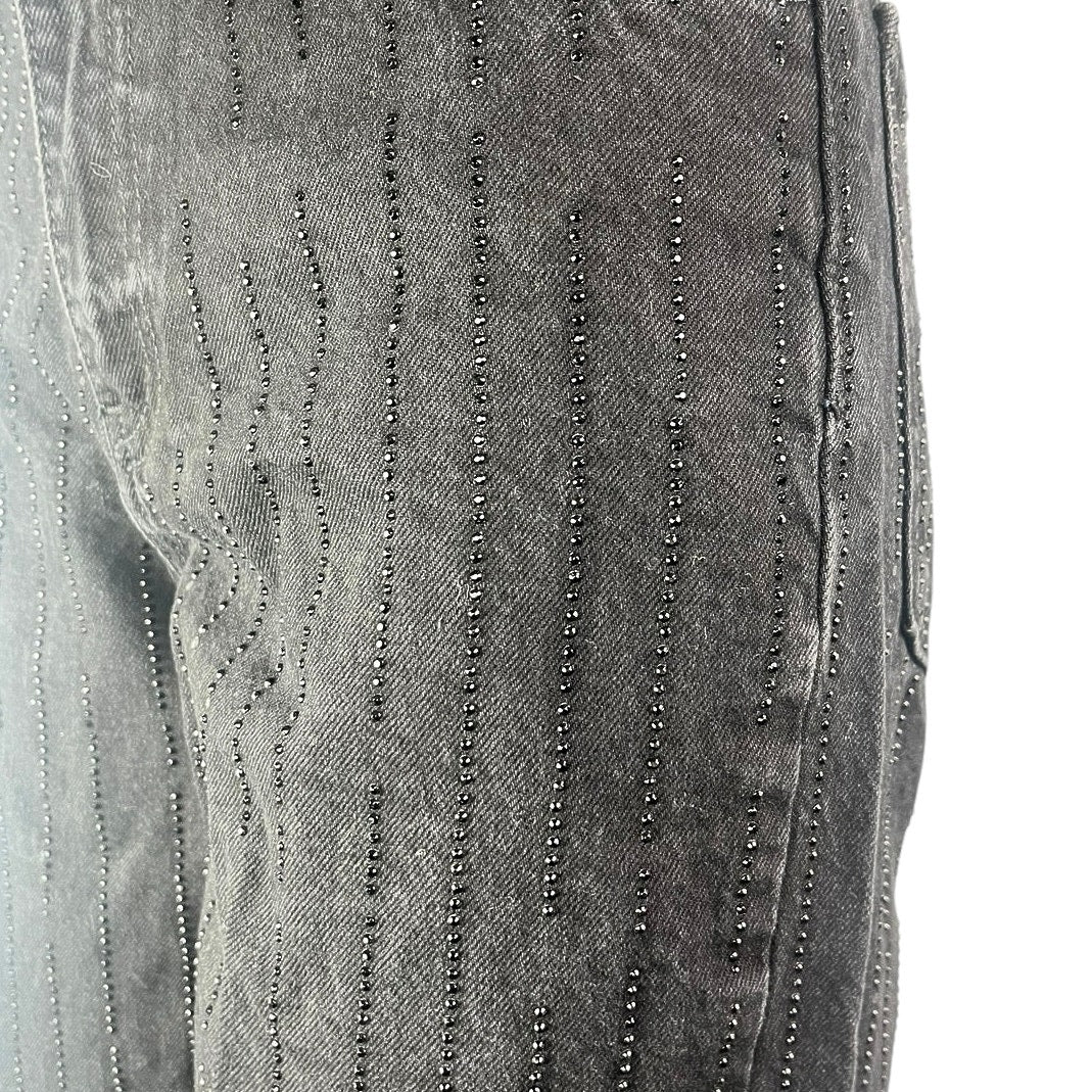 Zara Women's Black Beaded Rhinestone High Waist Wide Leg Denim Mom Jeans Size 2