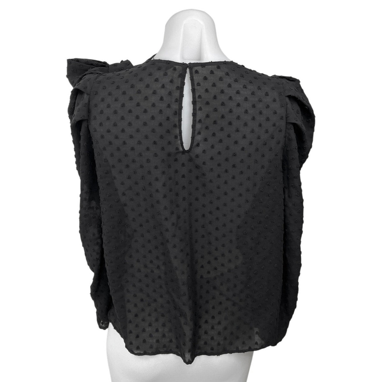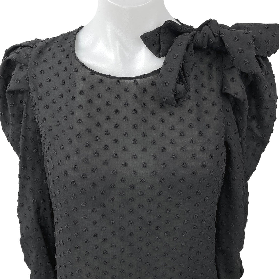 Zara Women's Black Bow Tie Long Puff Sleeve 3D Semi Sheer Blouse Top Size S