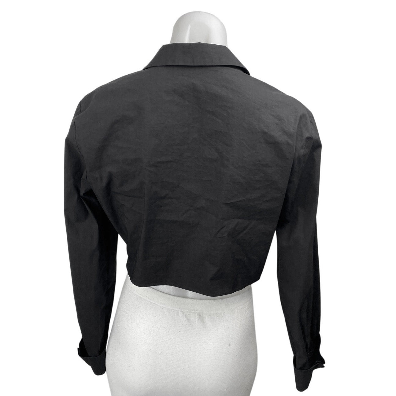 Zara Women's Black Collared Long Sleeve Cutout Open Front Crop Shirt Top Size L