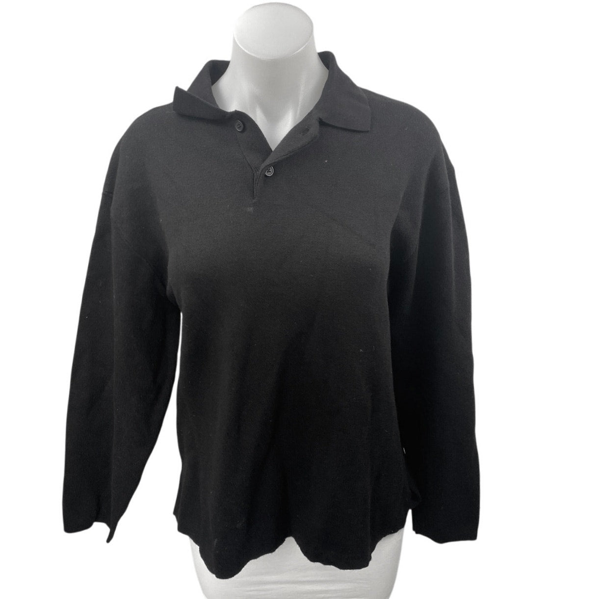 Zara Women's Black Collared Long Sleeve Knit Polo Sweatshirt Sweater Top Size L