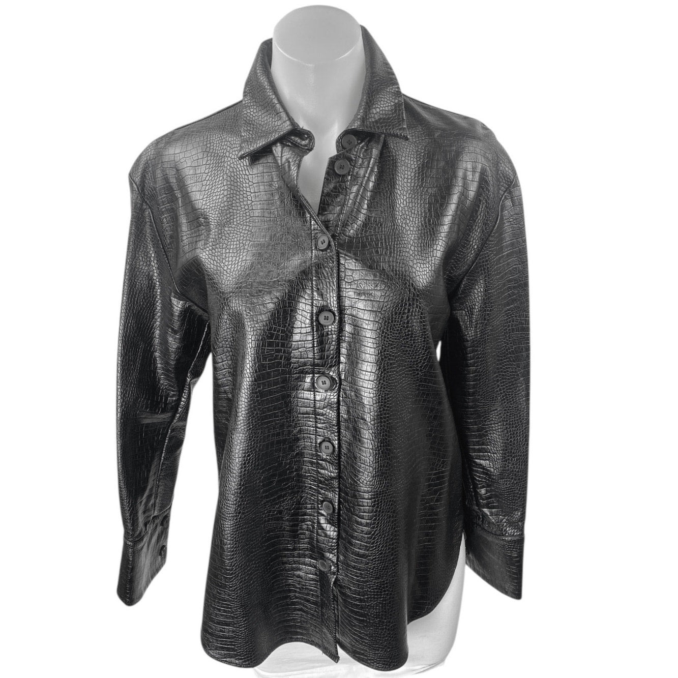 Zara Women's Black Faux Leather Vegan Croc Long Sleeve Button Up Jacket Size S