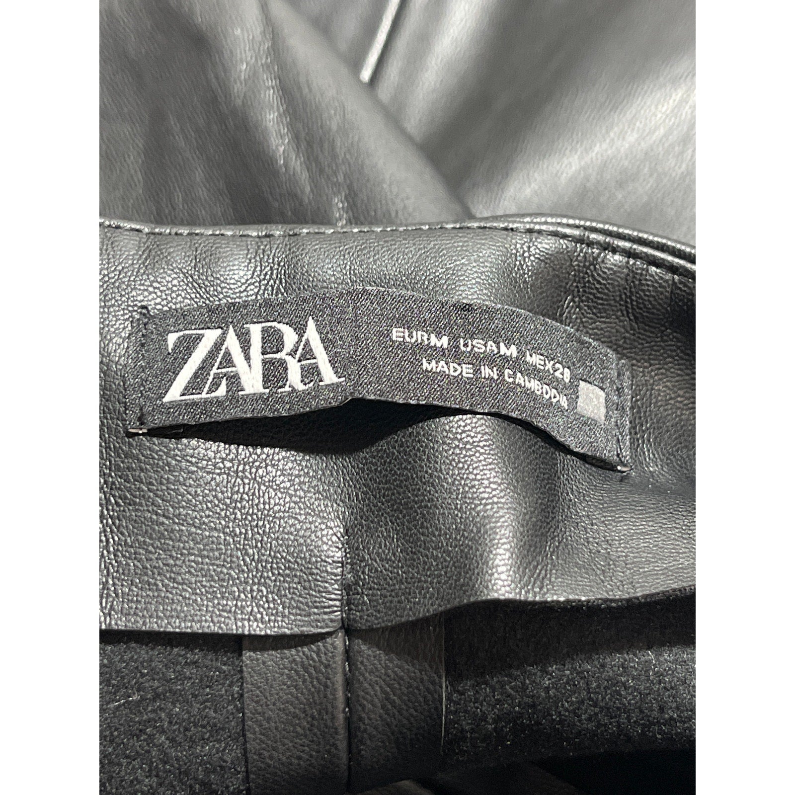 Zara Women's Black Faux Vegan Leather High Waist Mini Flared A-Line Skirt Size M
