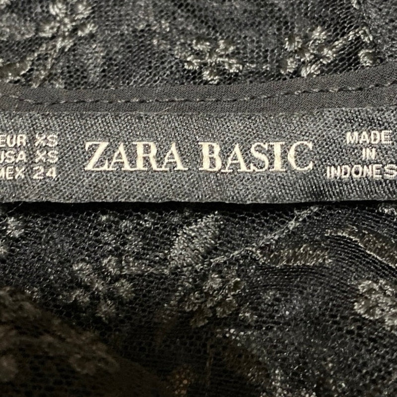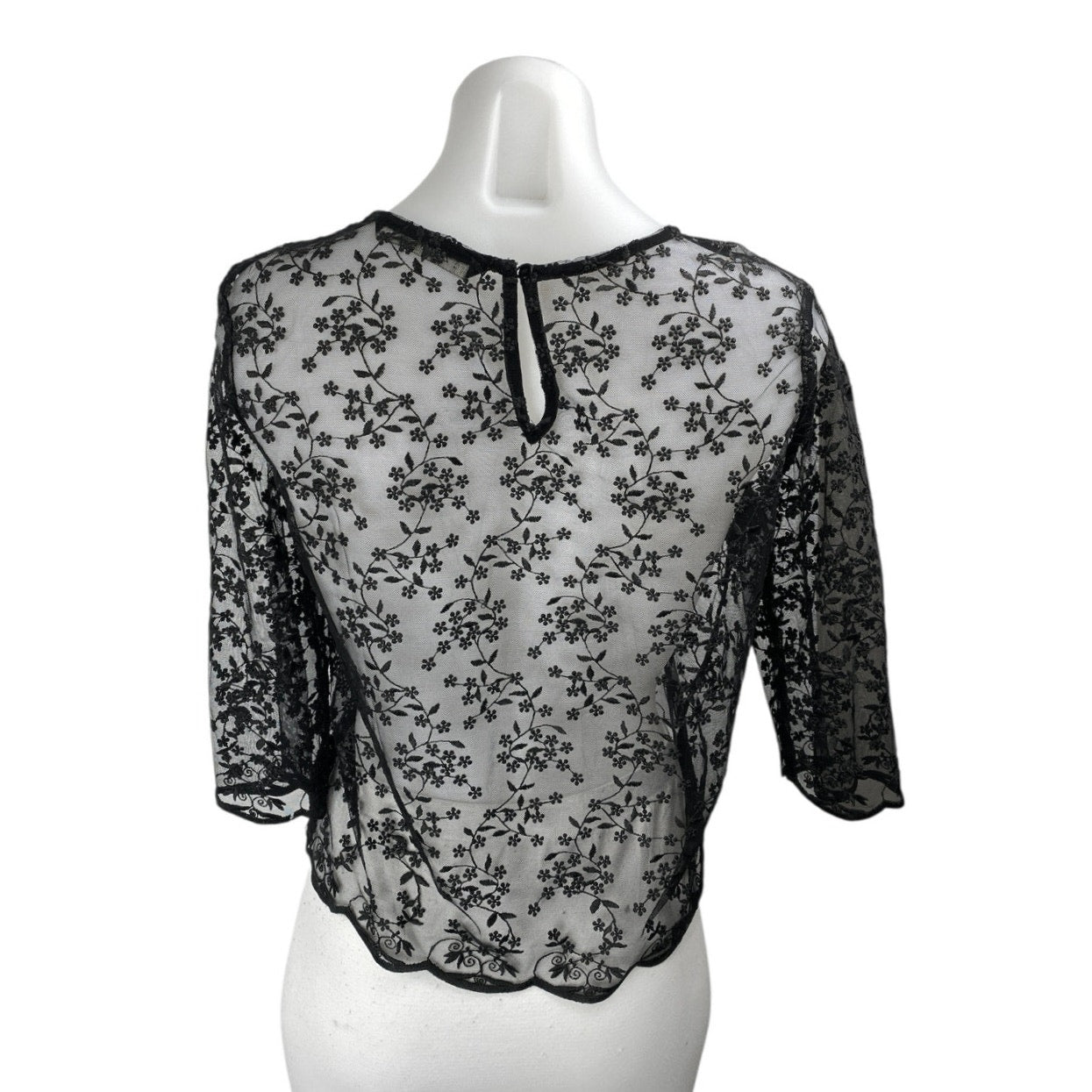 Zara Women's Black Floral Mesh Sheer Half Sleeve Pullover Blouse Top Size XS