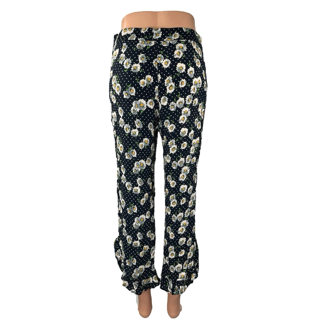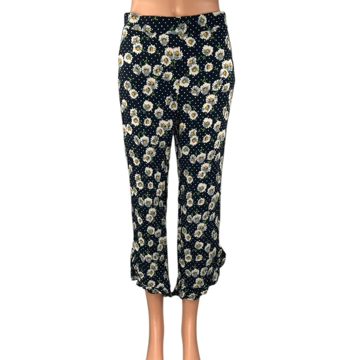 Zara Women's Black Floral Polka Dots High Rise Cropped Trousers Pants Size M