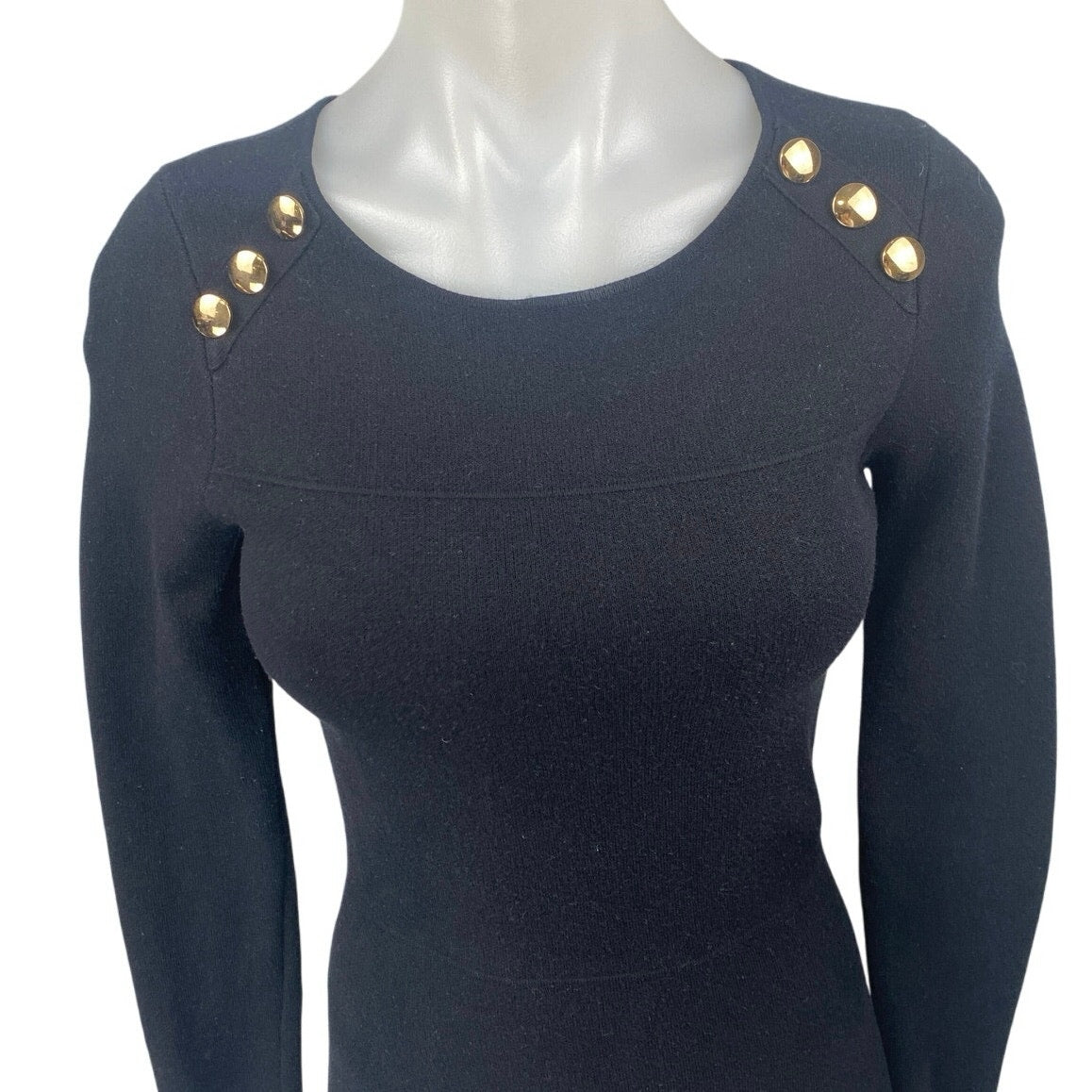Zara Womens Black Gold Button Long Sleeve Knit Mini A Line Sweater Dress Size S