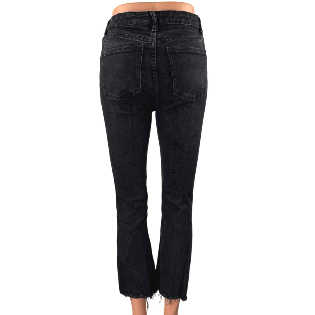 Zara Women's Black High Rise Slim Flared Bootcut Raw Crop Denim Jeans Size 4