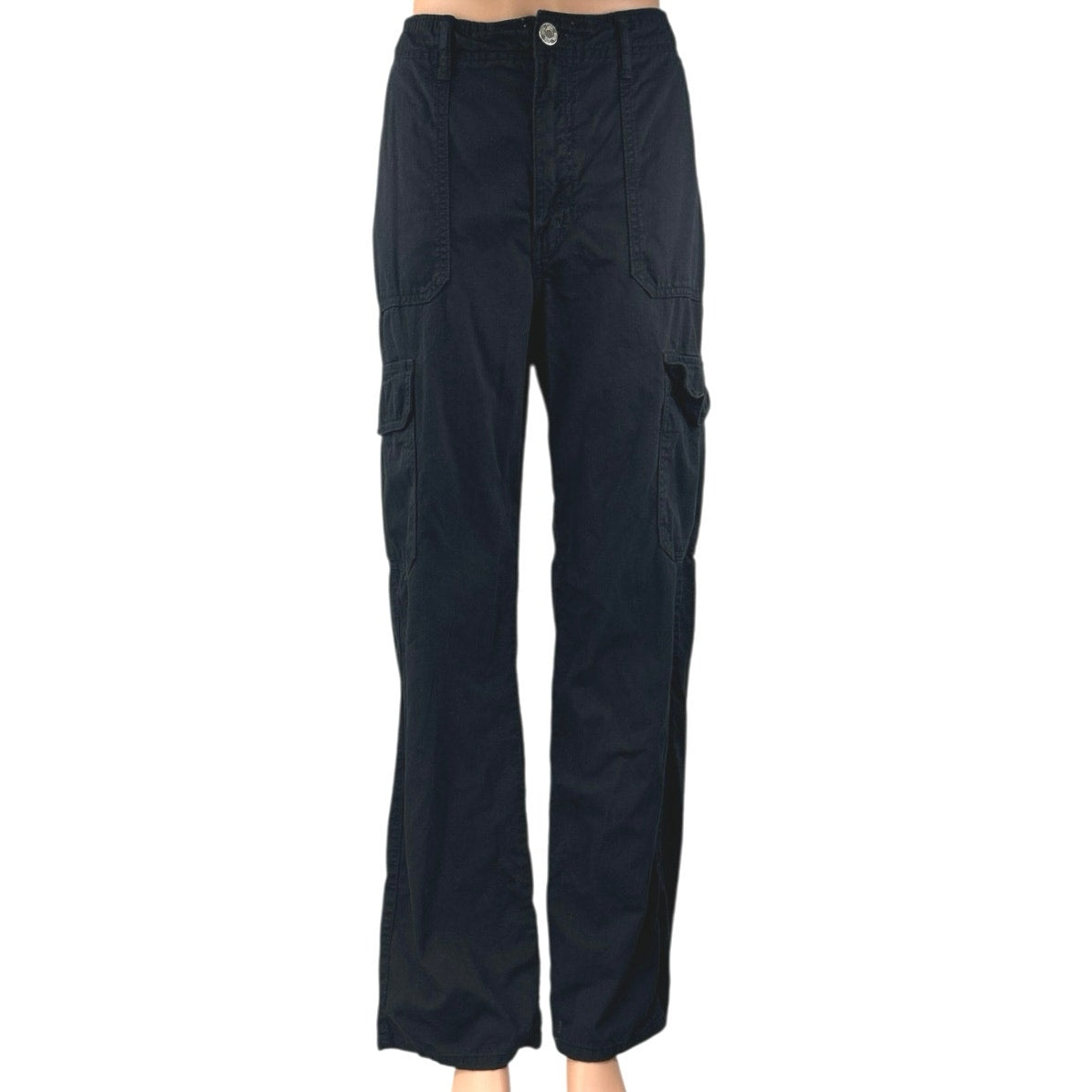 Zara Women's Black High Waisted Baggy Wide Leg Trousers Cargo Pants Size 8