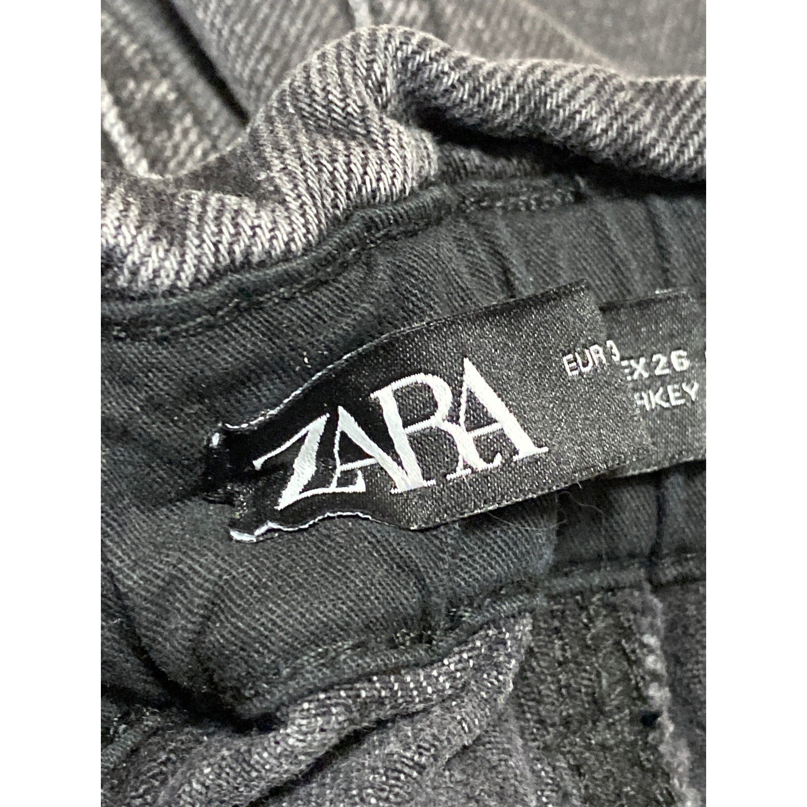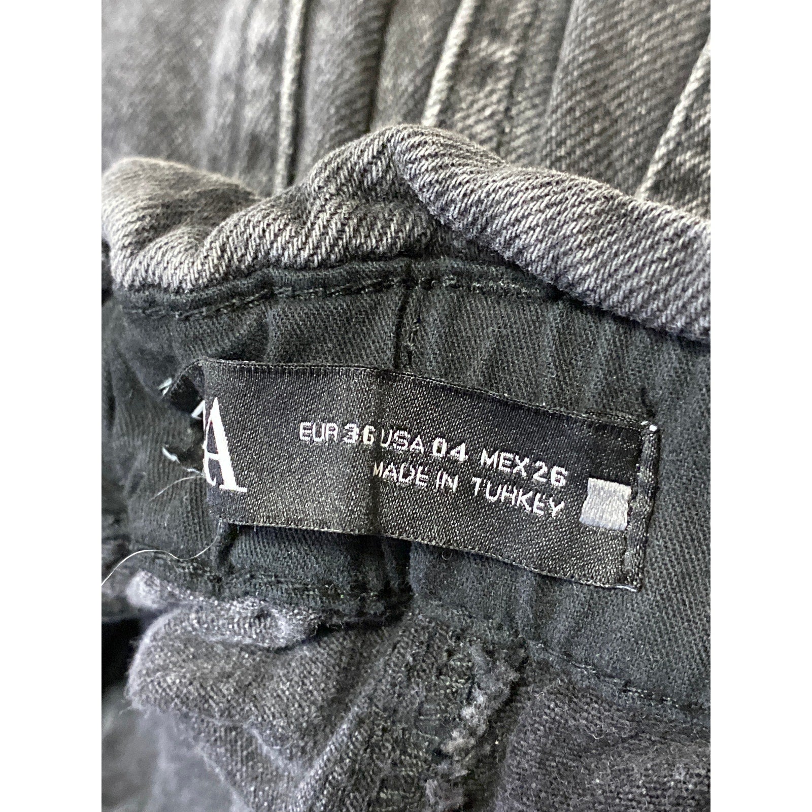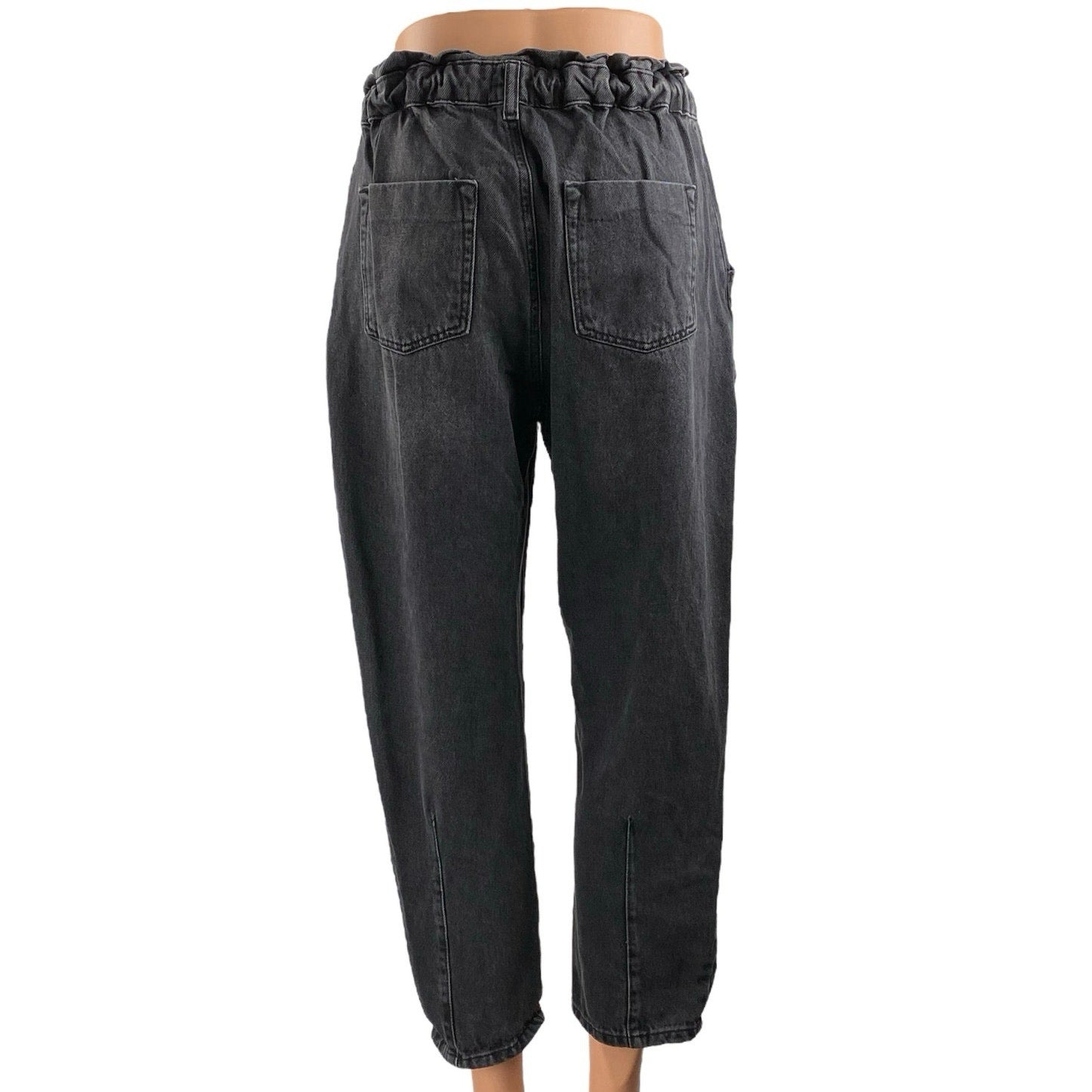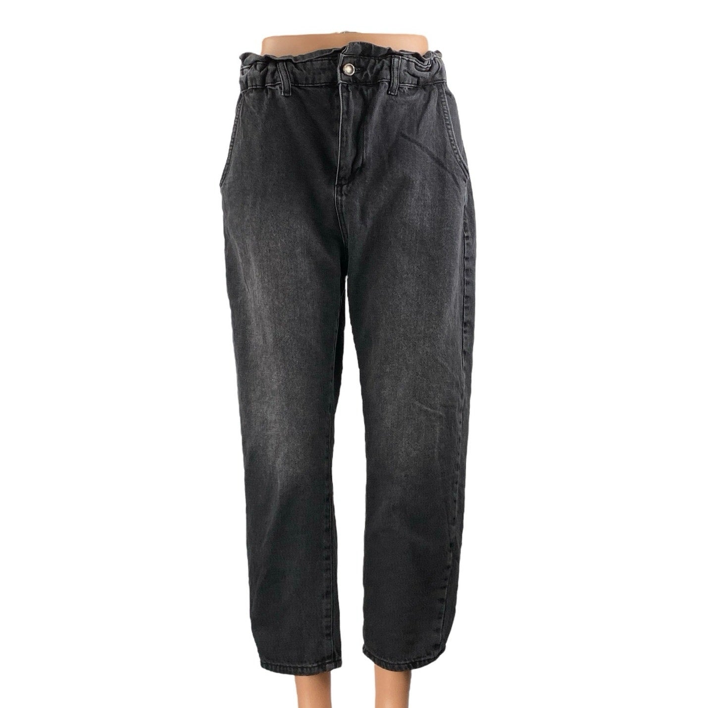 Zara Women's Black High Waisted Straight Tapered Barrel Paperbag Denim Jeans 36