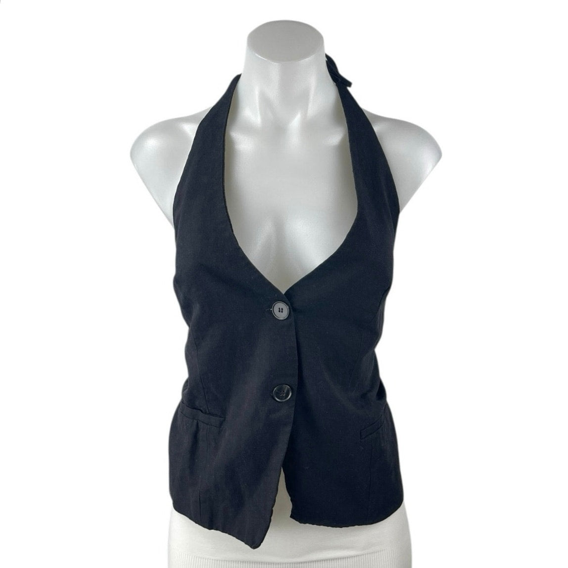 Zara Women's Black Linen Halter Tie Back Sleeveless Button Vest Tank Top Size M
