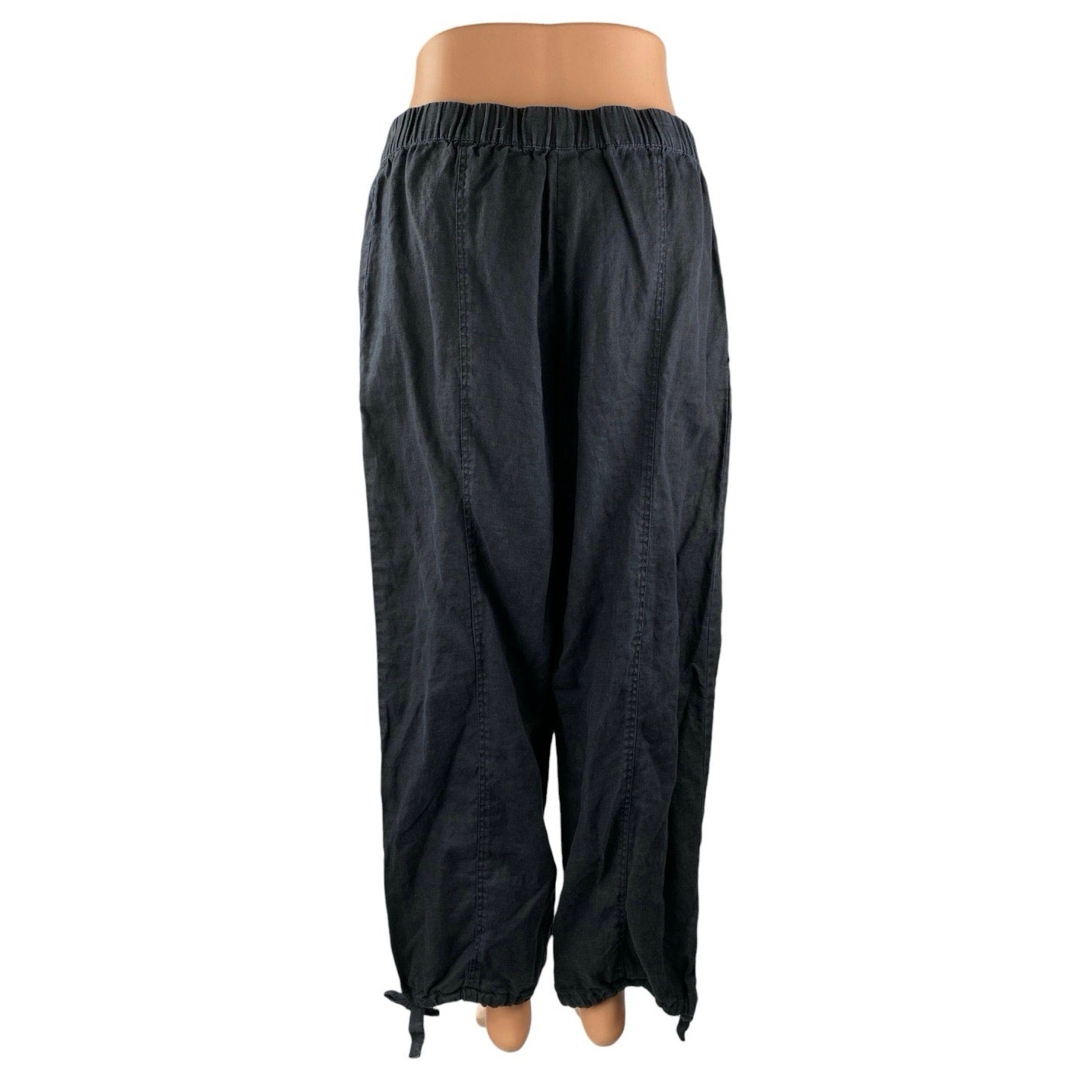 Zara Women's Black Linen High Waisted Tapered Ankle Jogger Trousers Pants Size L