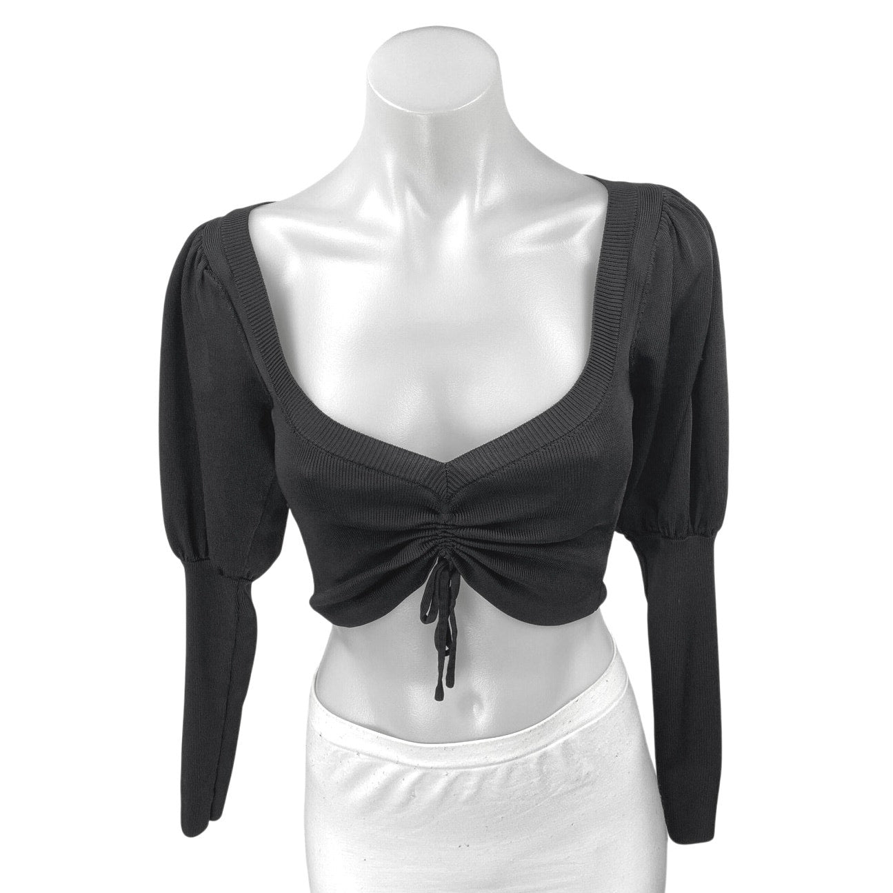 Zara Women's Black Long Balloon Sleeve Ruched Tie Cropped Blouse Top Size S