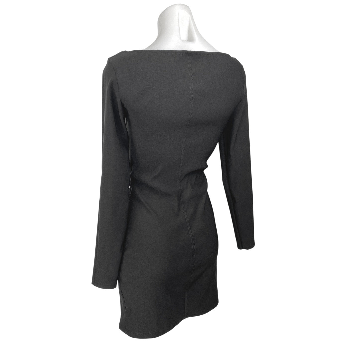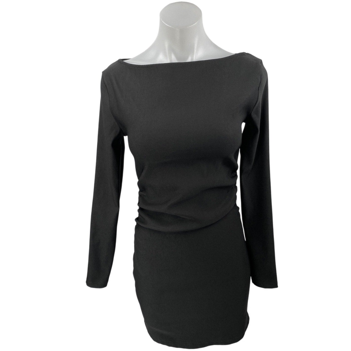 Zara Women's Black Long Sleeve Boat Neck Formal Fitted Mini Sheath Dress Size M