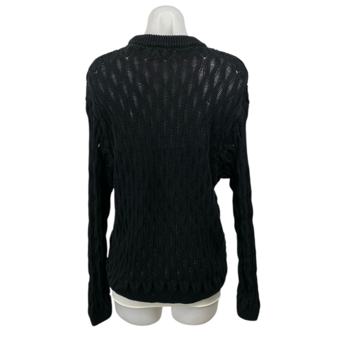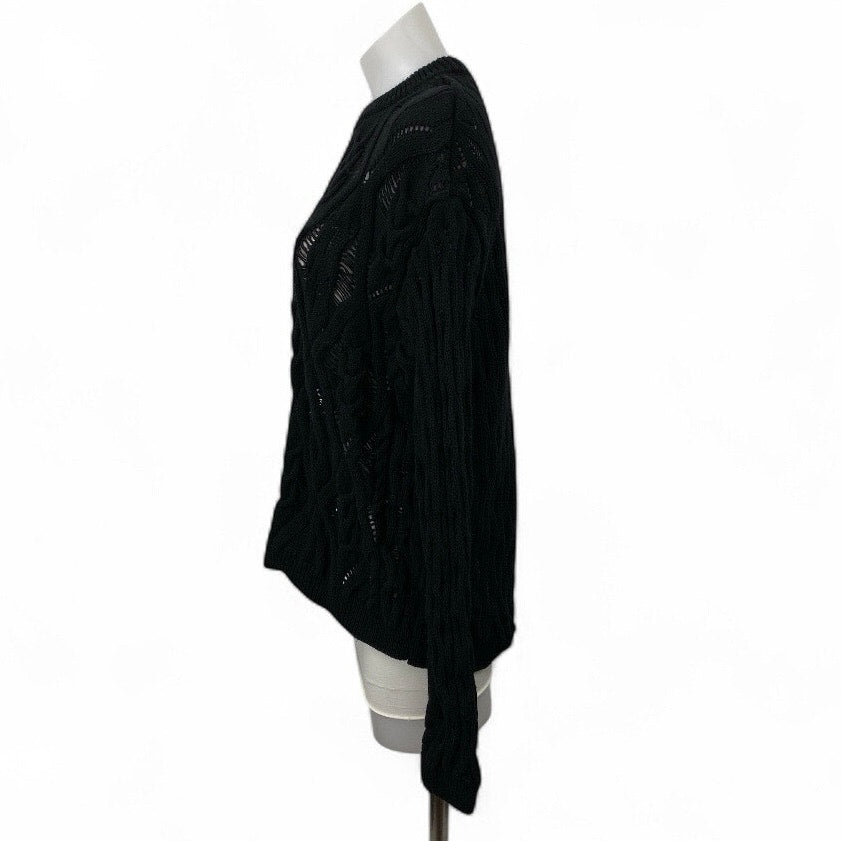 Zara Womens Black Long Sleeve Cable Knit Semi Sheer Crew Neck Sweater Top Size M