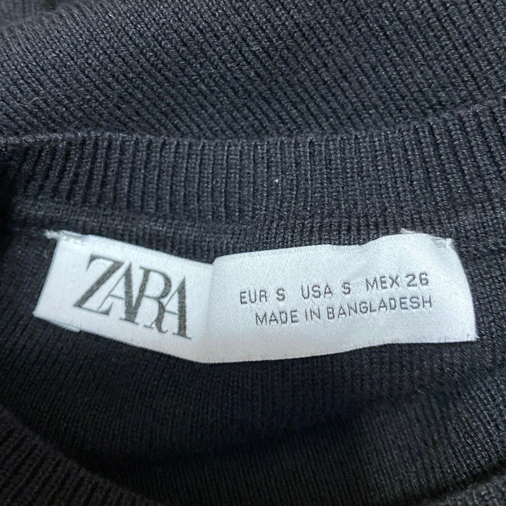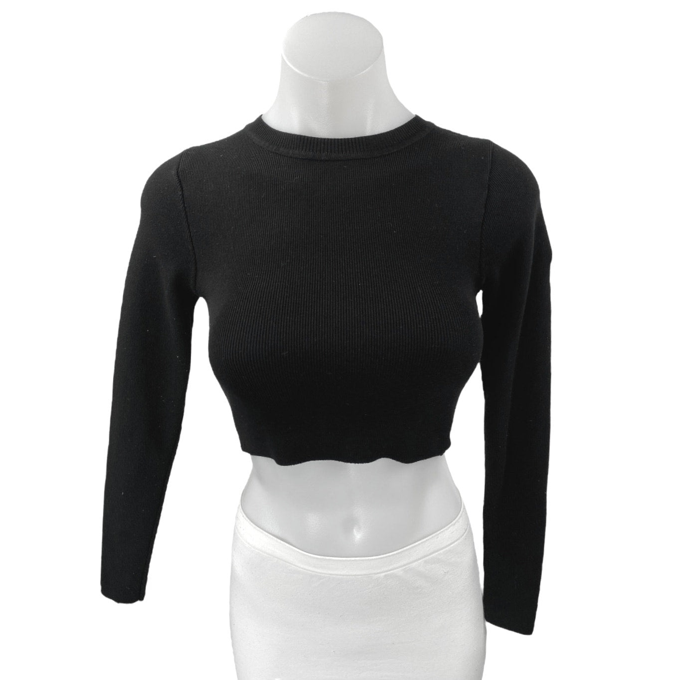Zara Women's Black Long Sleeve Crew Neck Ribbed Knit Sweater Crop Top Size S