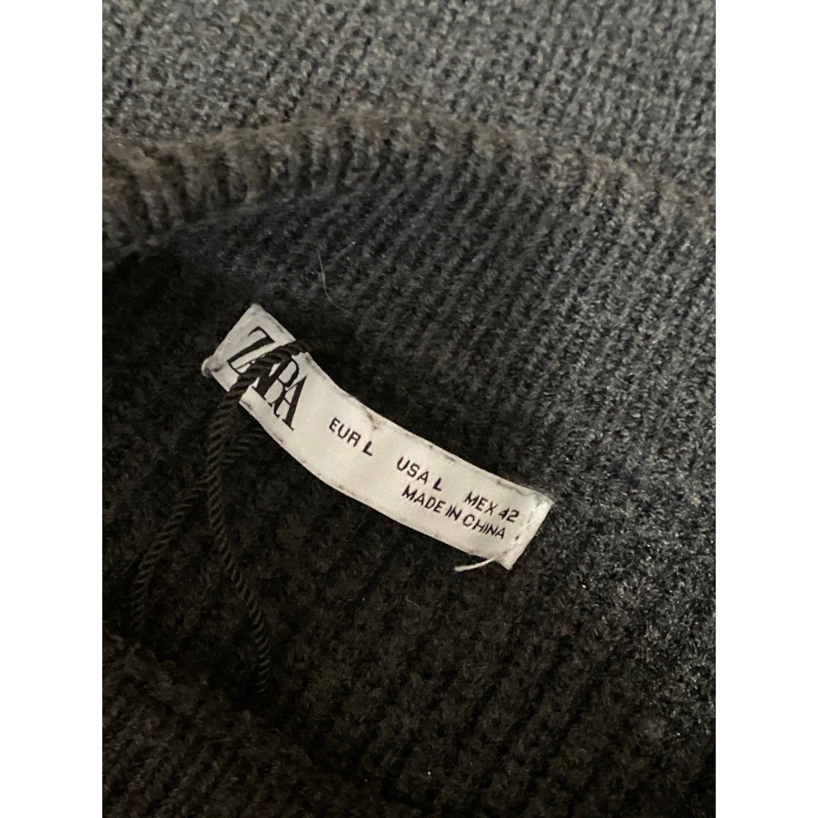 Zara Women's Black Long Sleeve Ribbed Knit Crew Neck Pullover Sweater Top Size L