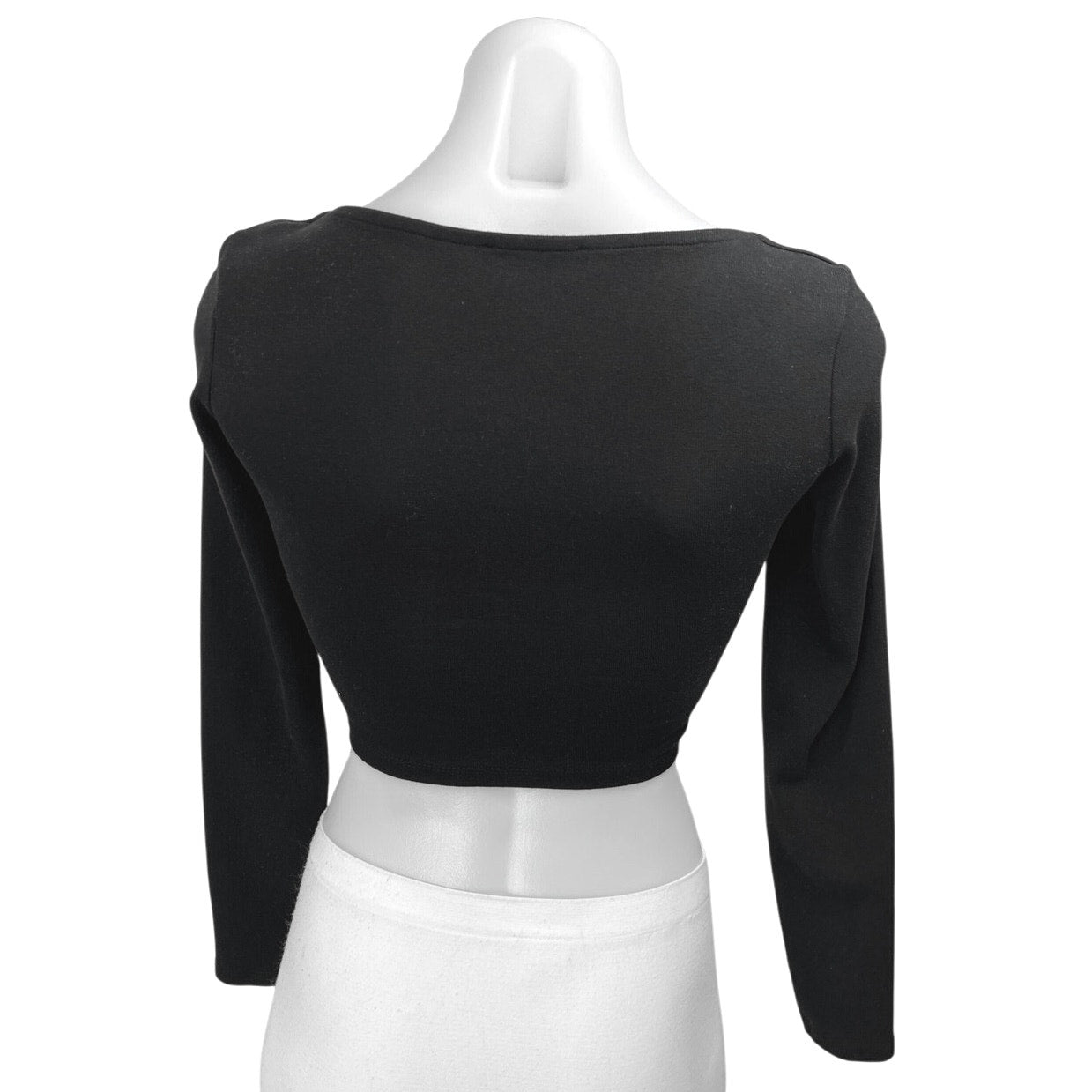 Zara Women's Black Long Sleeve Square Neck Blouse T Shirt Tee Crop Top Size M