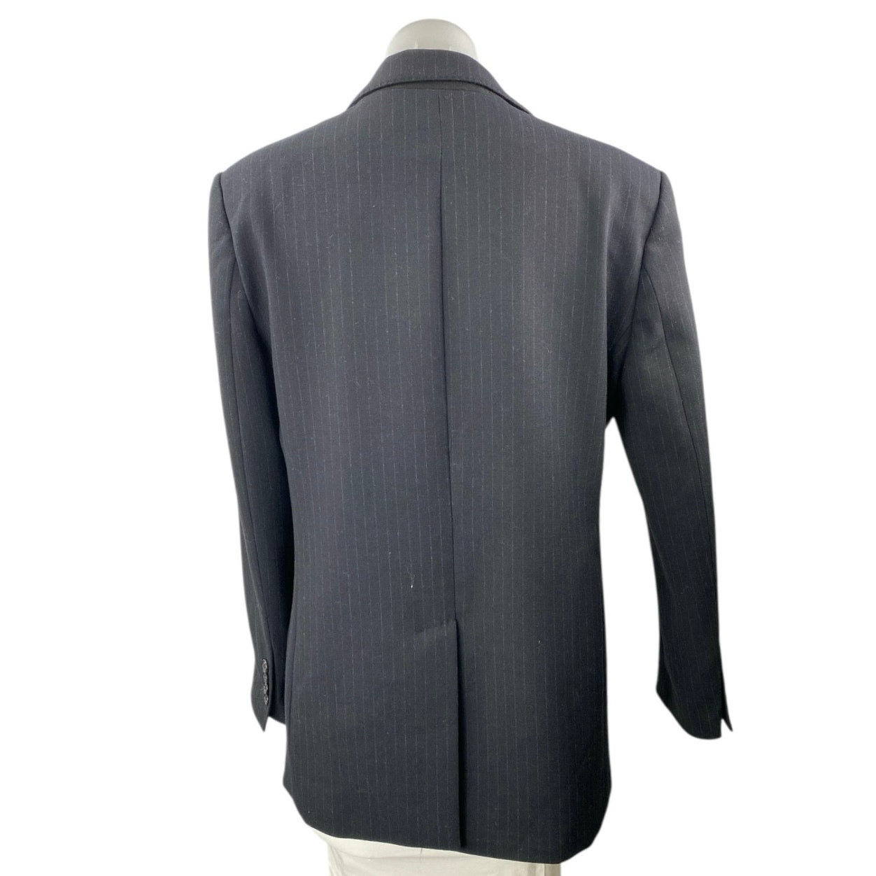 Zara Women's Black Pinstriped Collared Long Sleeve Button Blazer Coat Jacket M