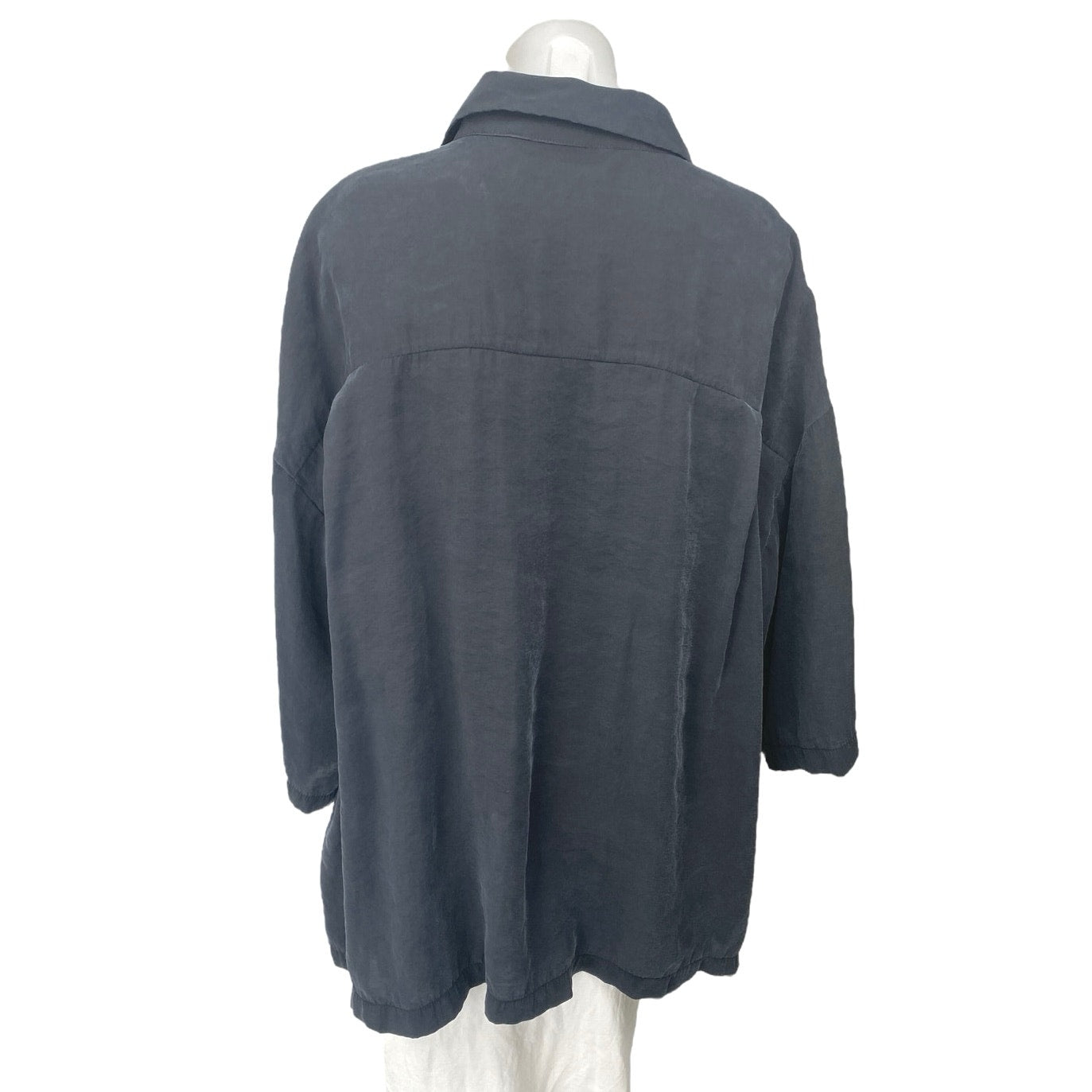 Zara Women's Black Relaxed Oversized Long Sleeve Button Up Shirt Tunic Top Sz M