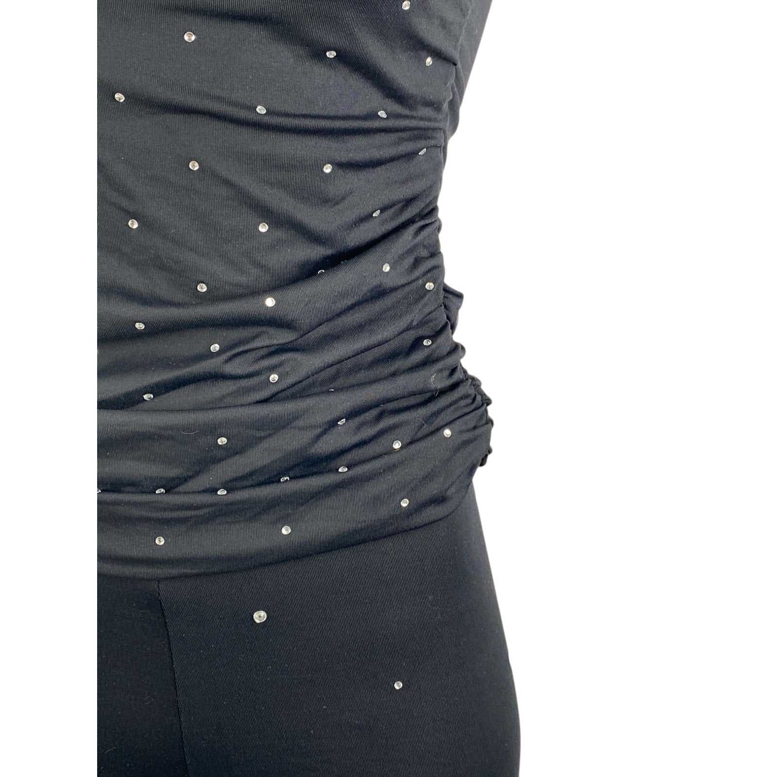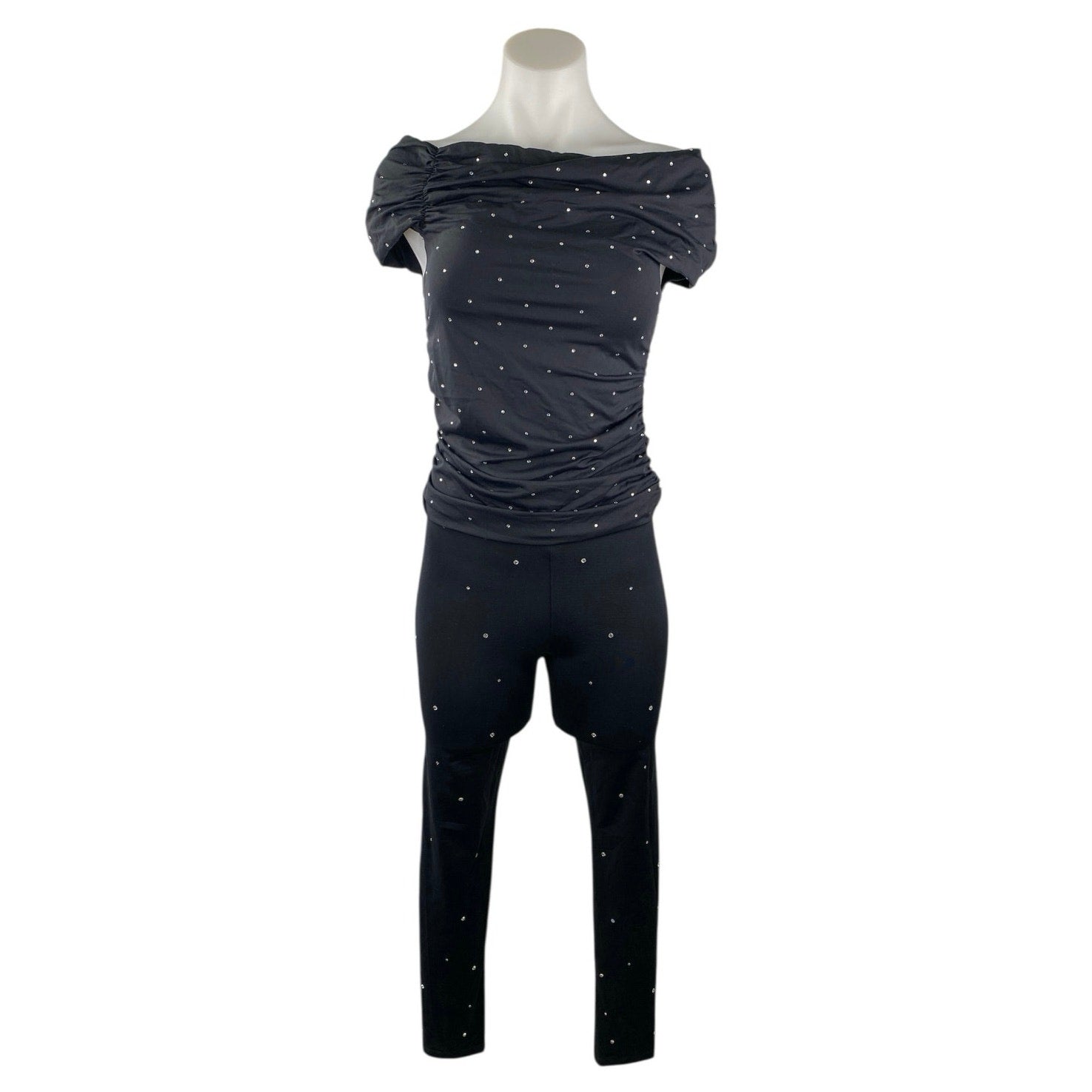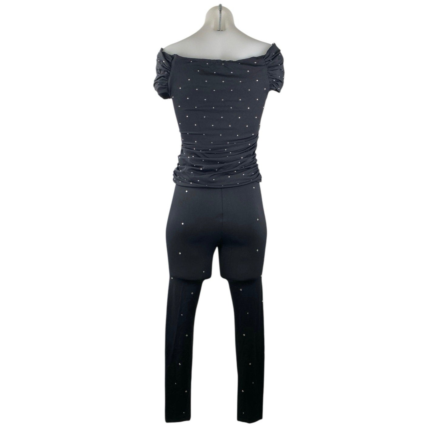 Zara Women's Black Rhinestone Off The Shoulder Top Crop Pants 2 Piece Set Size M