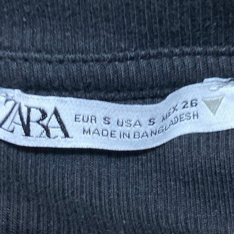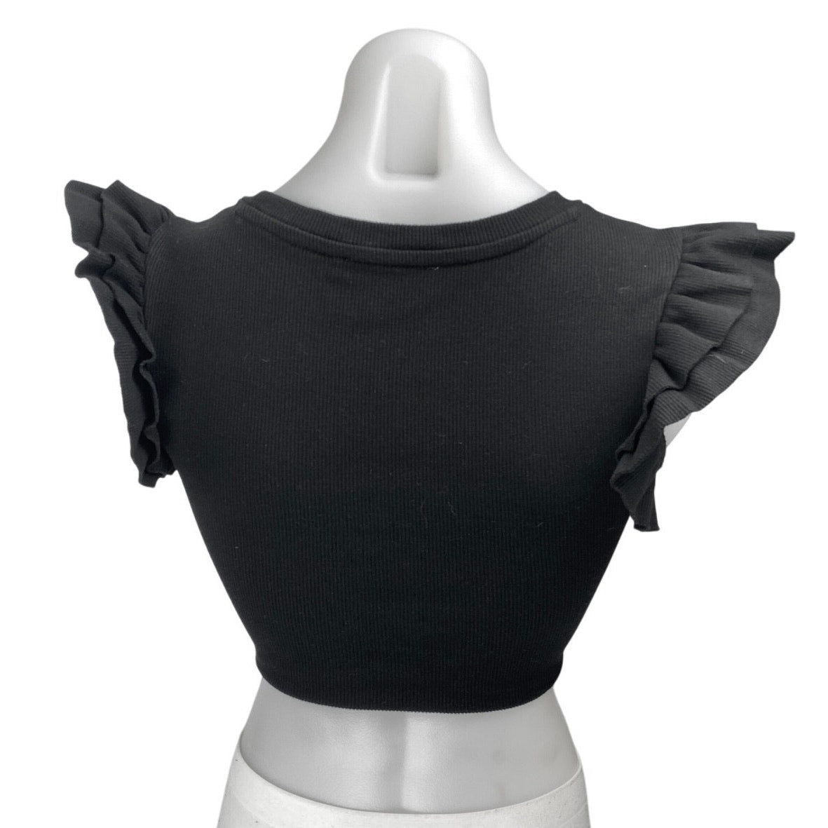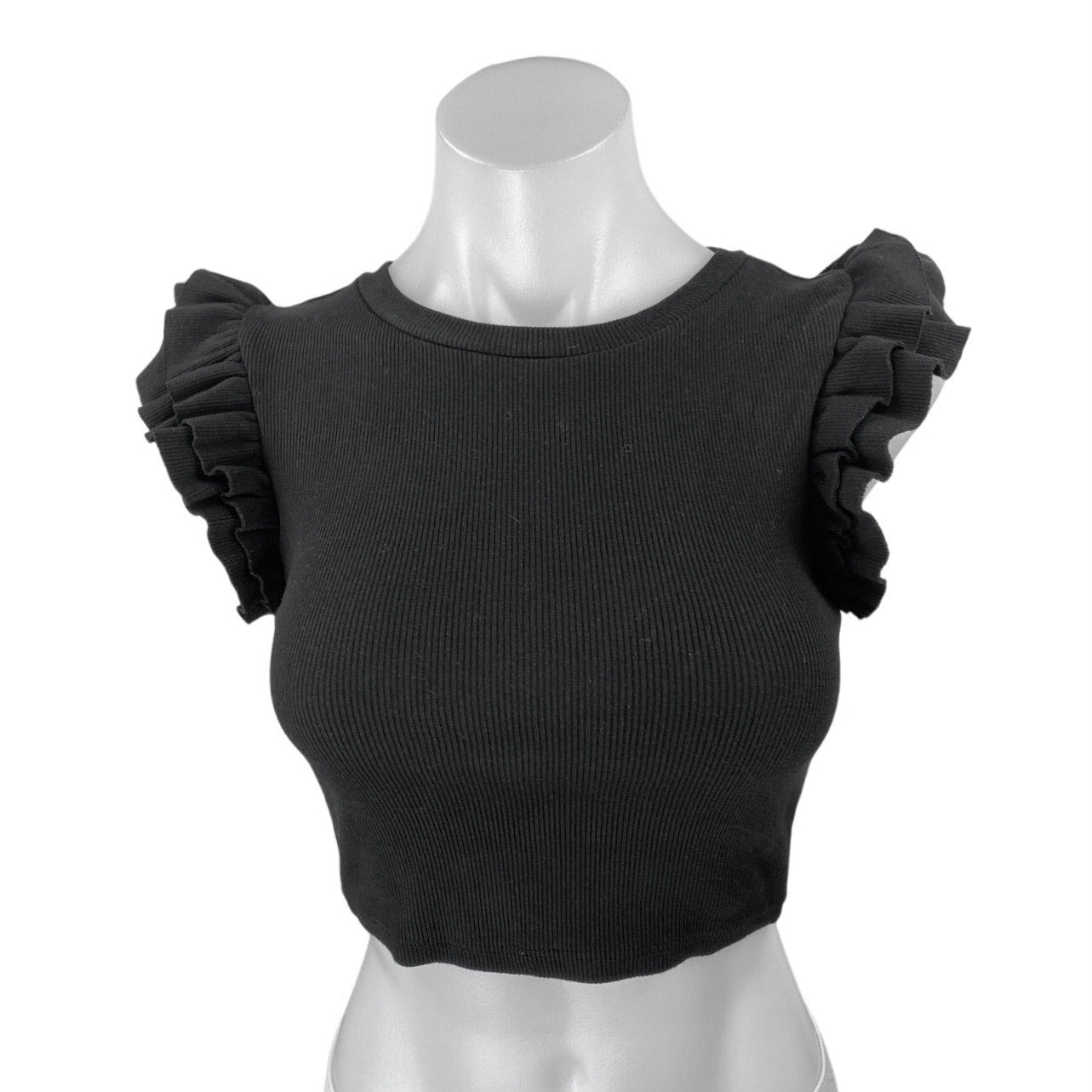 Zara Women's Black Rib Knit Ruffle Flutter Short Sleeve Crop Blouse Top Size S