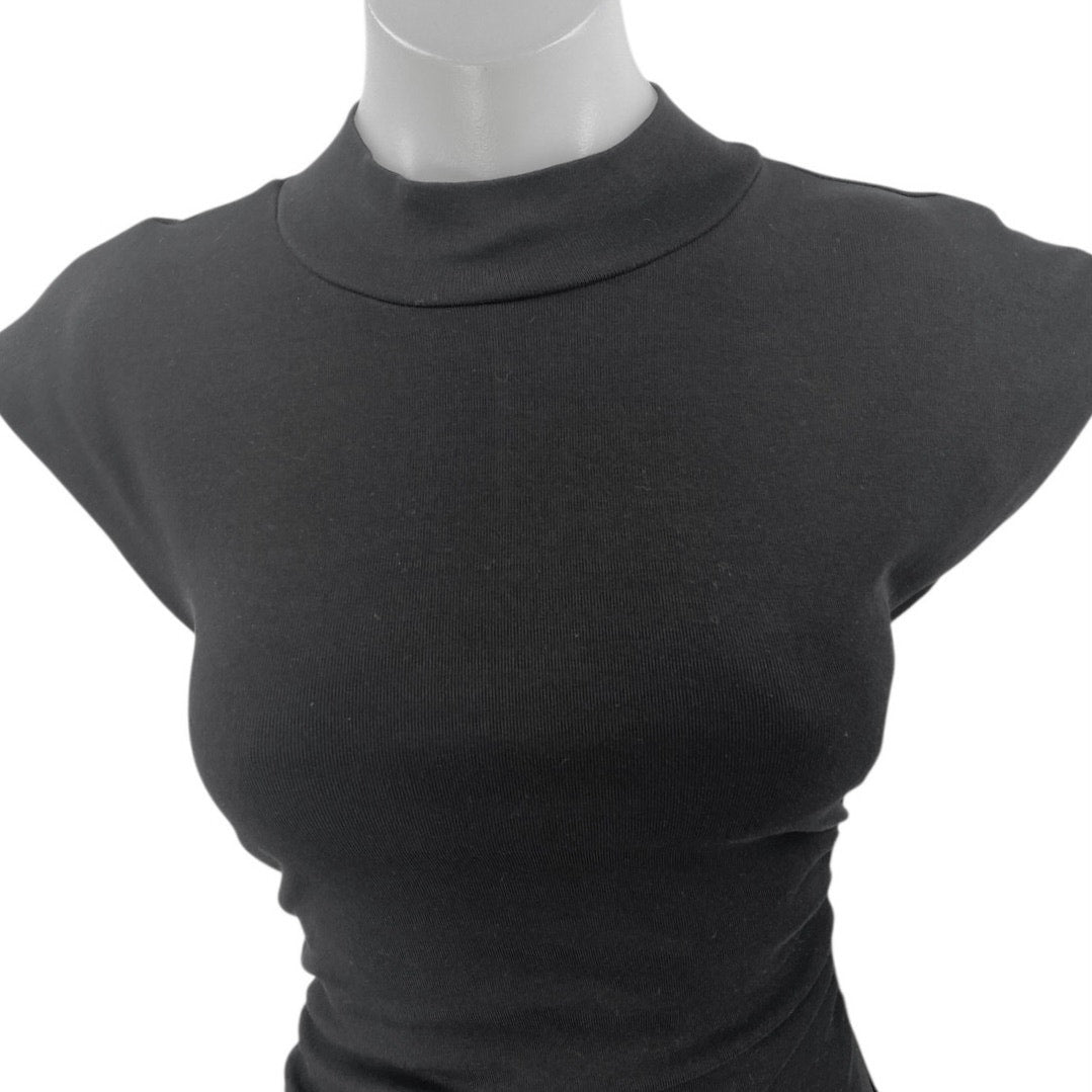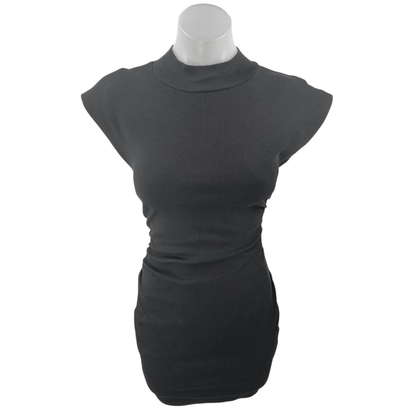 Zara Women's Black Rib Knit Short Sleeve High Neck Mini Bodycon Sweater Dress S