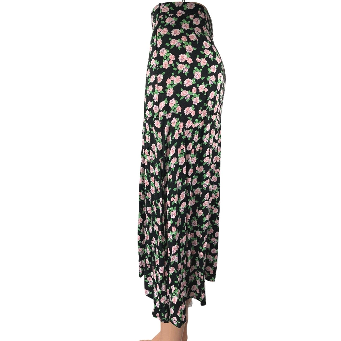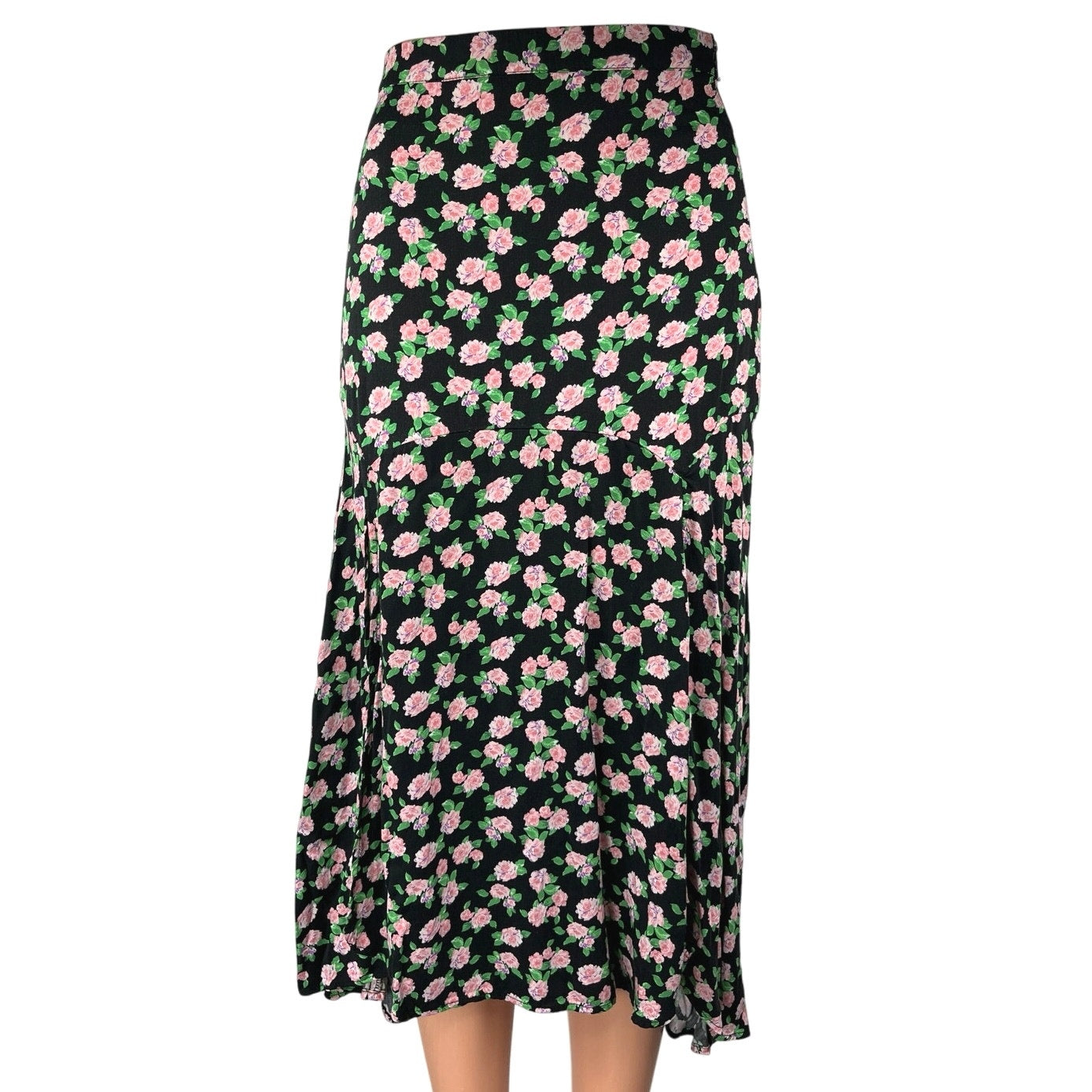 Zara Women's Black Rose Floral Slit Zipper Midi Straight A-line Skirt Size XS