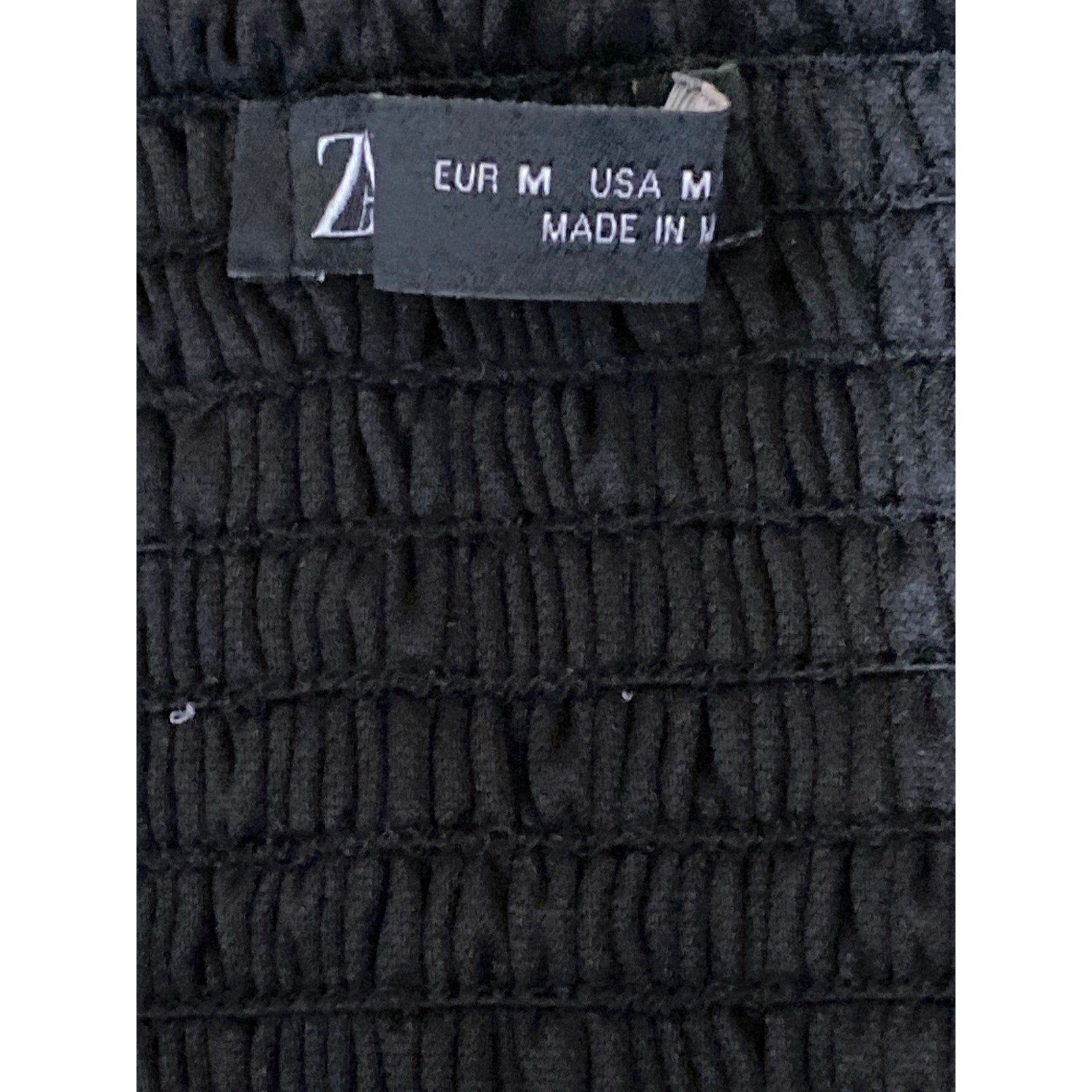 Zara Women's Black Satin Sleeveless Animal Print Crossback Crop Tank Top Size M