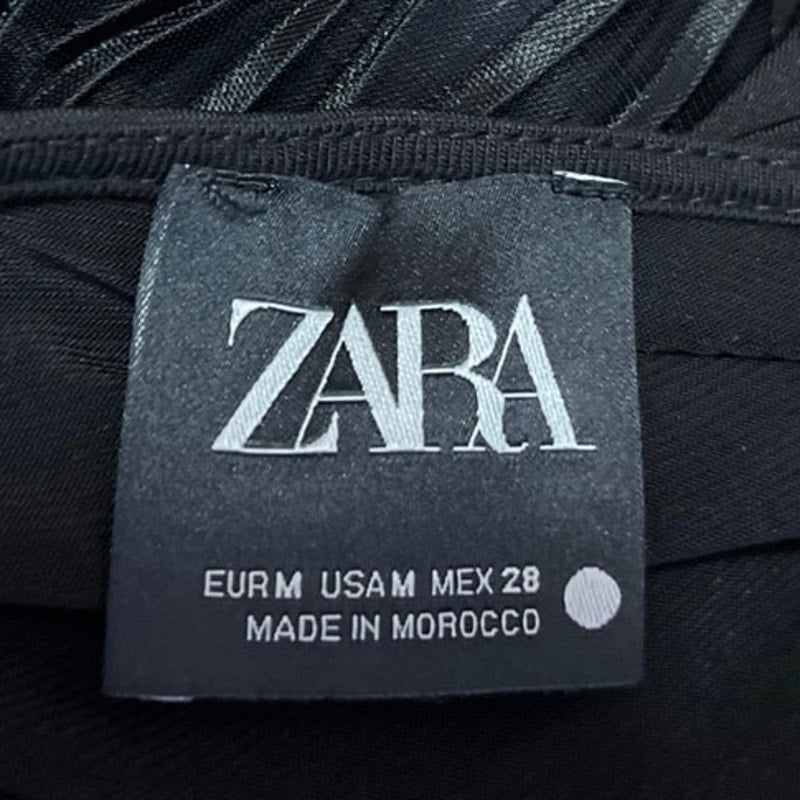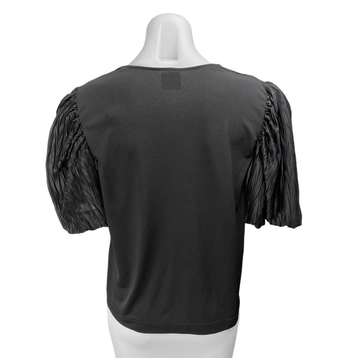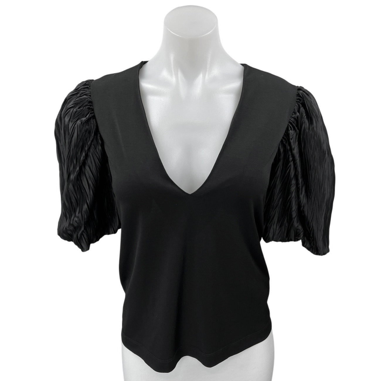 Zara Women's Black Short Puff Sleeve Plunge V-Neck Pullover Blouse Top Size M