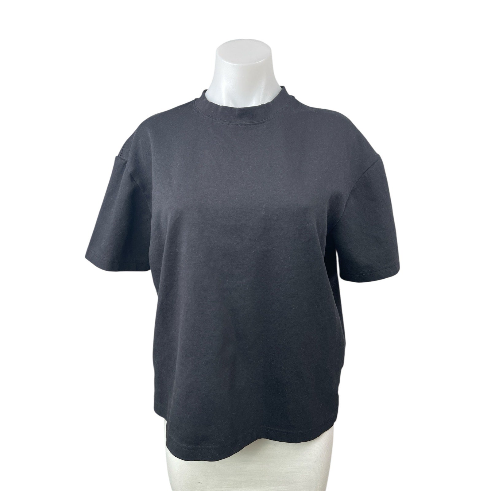 Zara Women's Black Short Sleeve Mock Neck Boxy Basic T Shirt Tee Top Size M