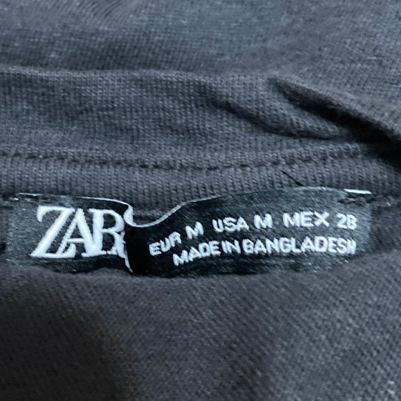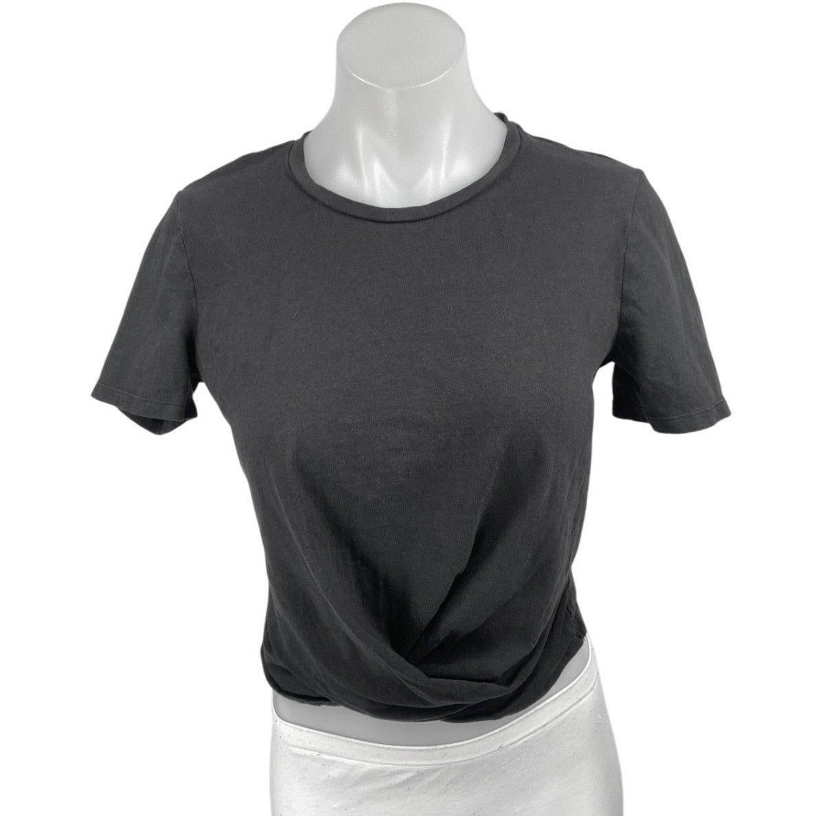 Zara Women's Black Short Sleeve Twist Front Crew Neck Crop T Shirt Tee Top Sz M