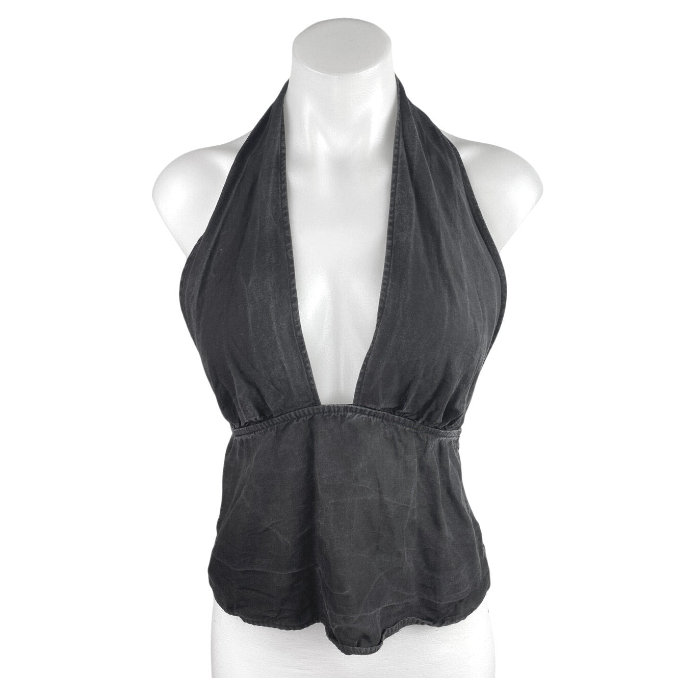 Zara Women's Black Sleeveless Halter Plunging Open Back Blouse Top Size XS