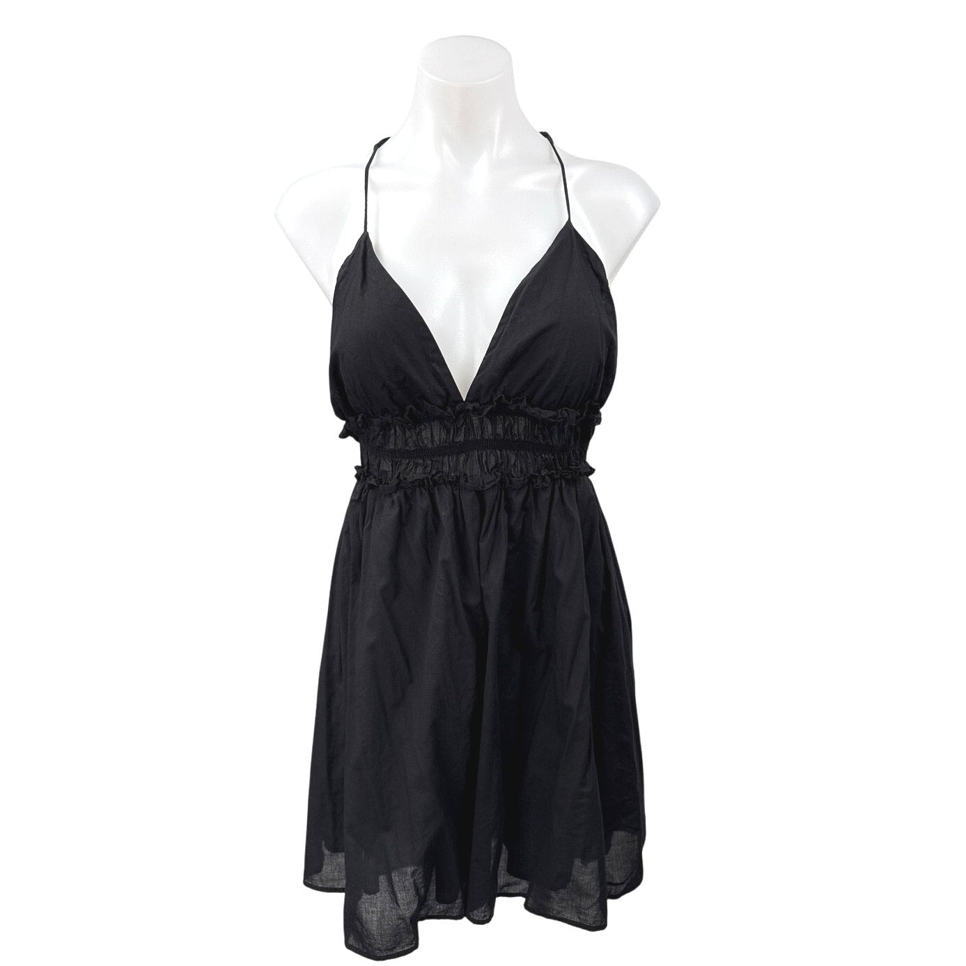 Zara Women's Black Sleeveless Smocked Ruffle Mini Cami Camisole Tank Dress Size XS