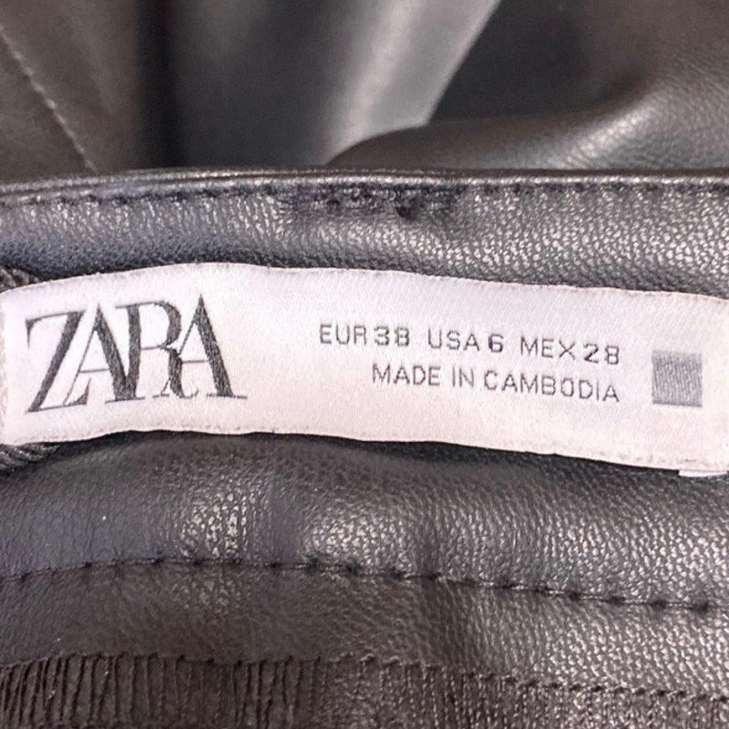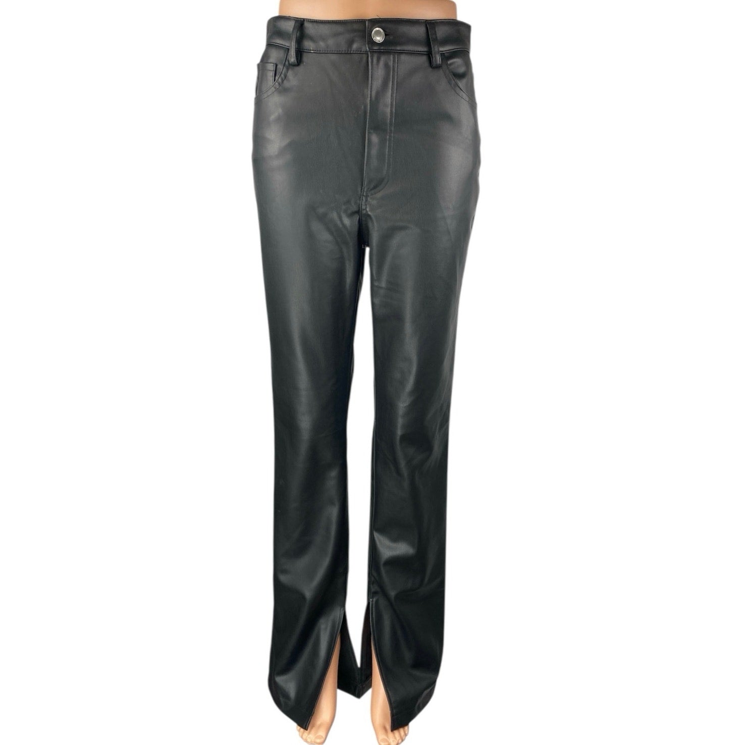 Zara Women's Black Split Faux Leather Vegan High Waisted Trousers Pants Size 6