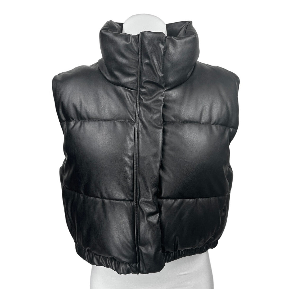 Zara Women's Black Turtleneck Sleeveless Puffer Quilted Vest Jacket Size XL